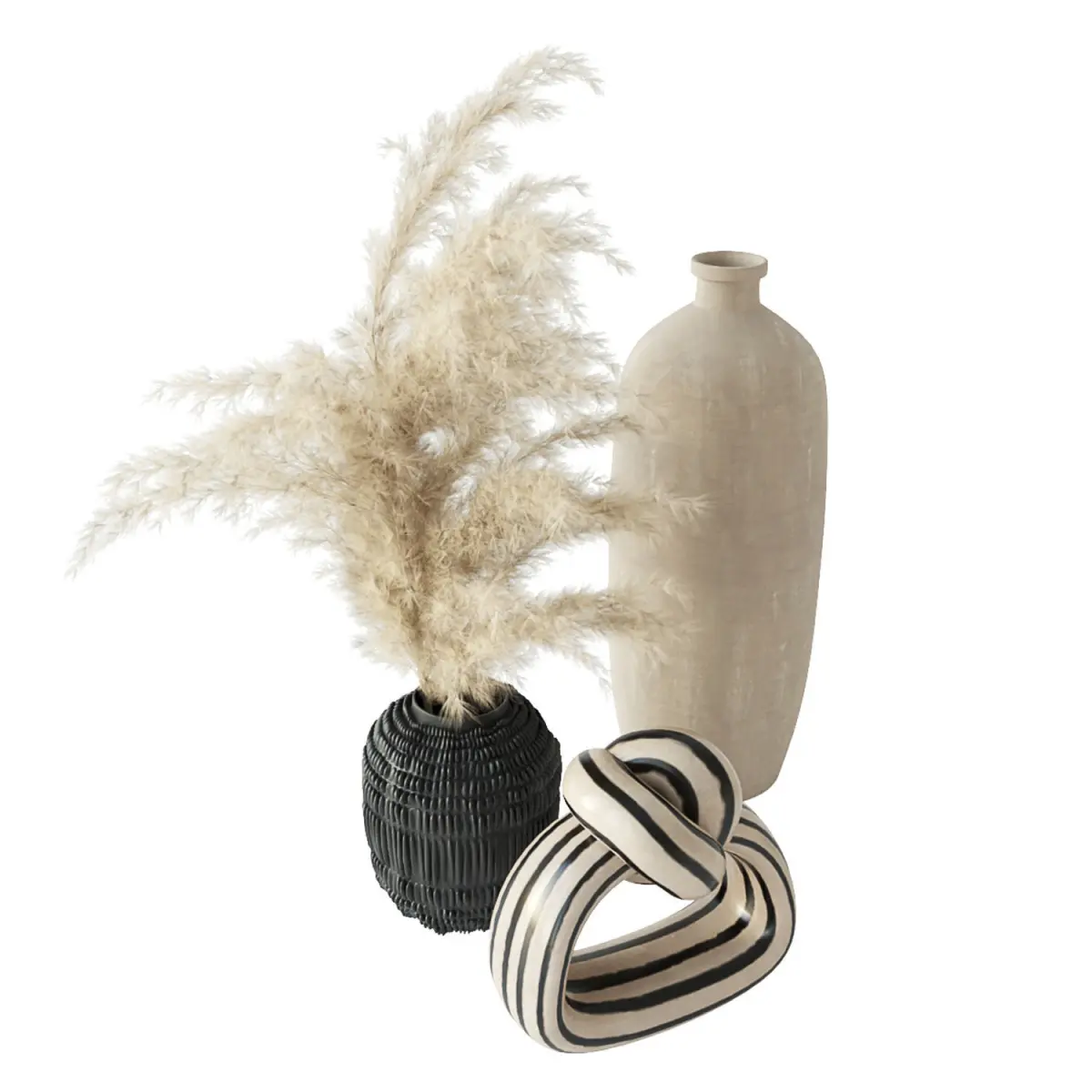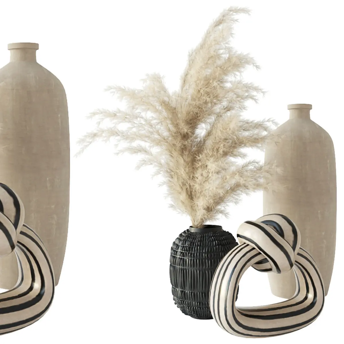 Minimalist set vases with dried grasses 3D model