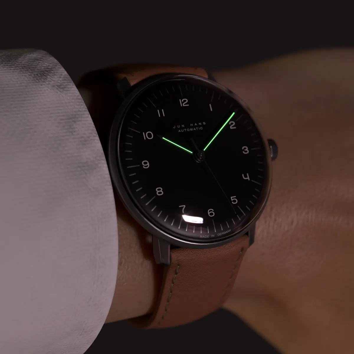 Automatic Wristwatch With Closed and Open Leather Strap.