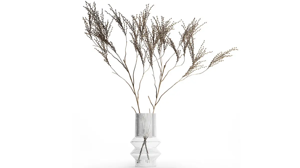 Lush minimalistic bouquet of dried flower branches in a modern glass vase, dry branches. Set 315.Decorative Bouquet of dried flowers in a glass vase for decoration and interior.Bouquet of dried flowersvase - RILLA VASE - NORDALvase with branches, branches in a vase
