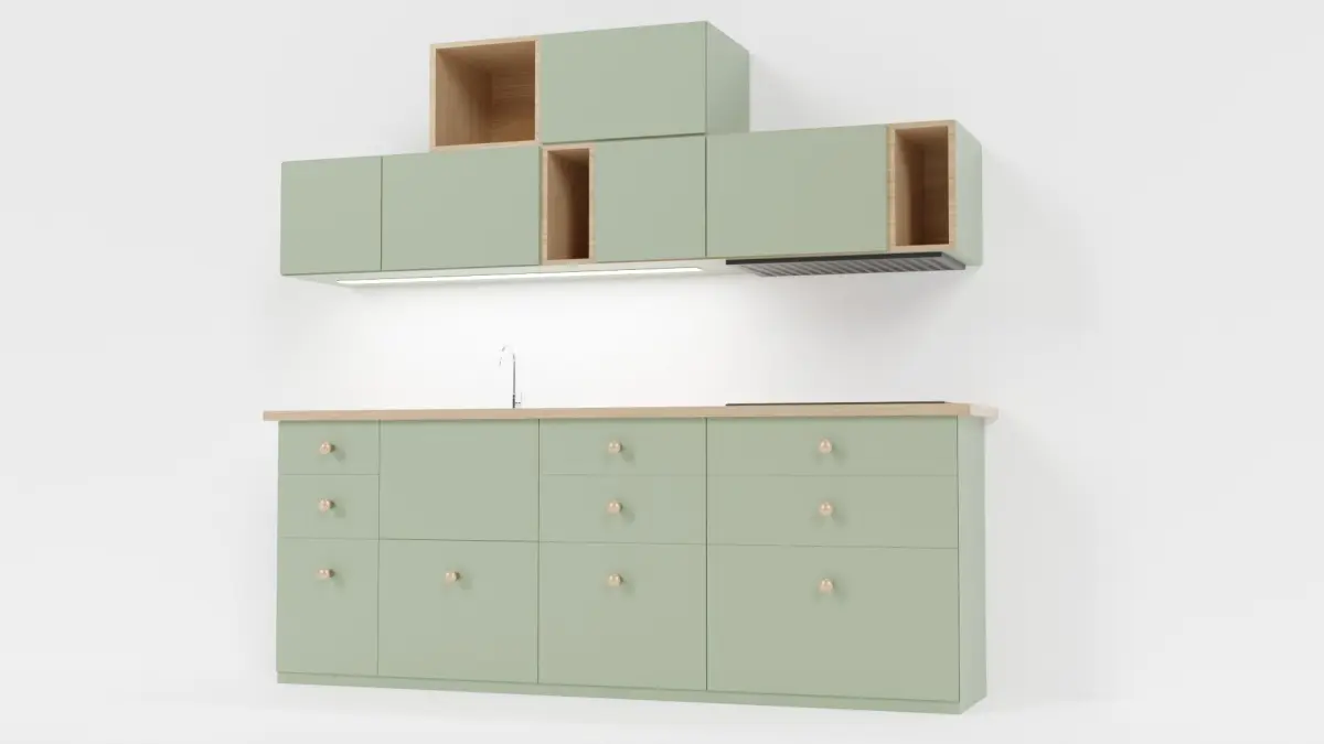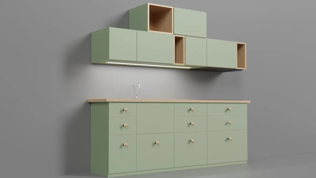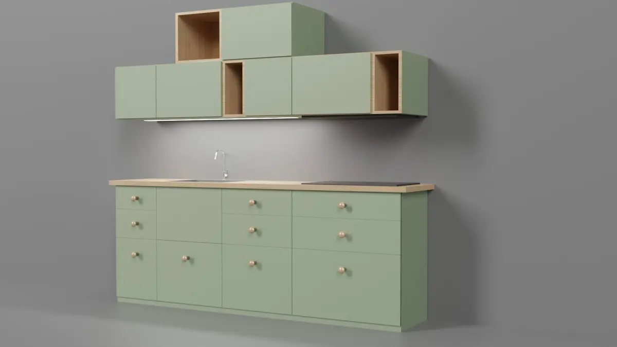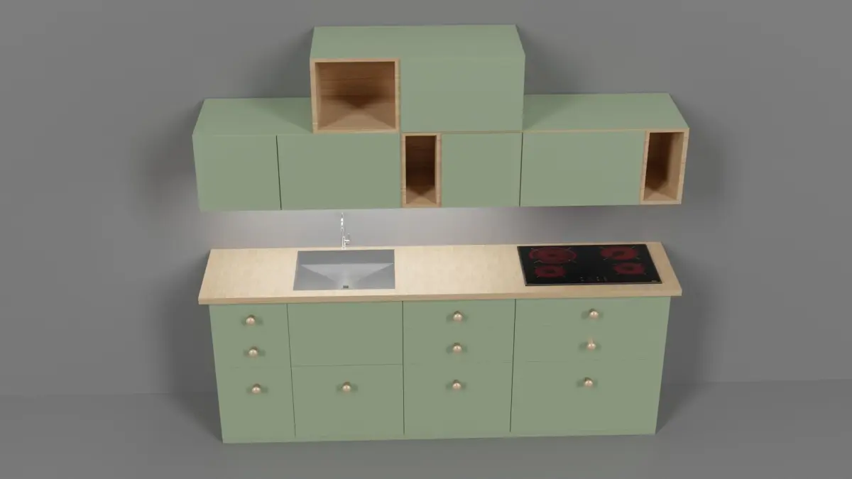 Minimalistic Kitchen furniture 3d modelmodeled in Blenderyou can use for interior design