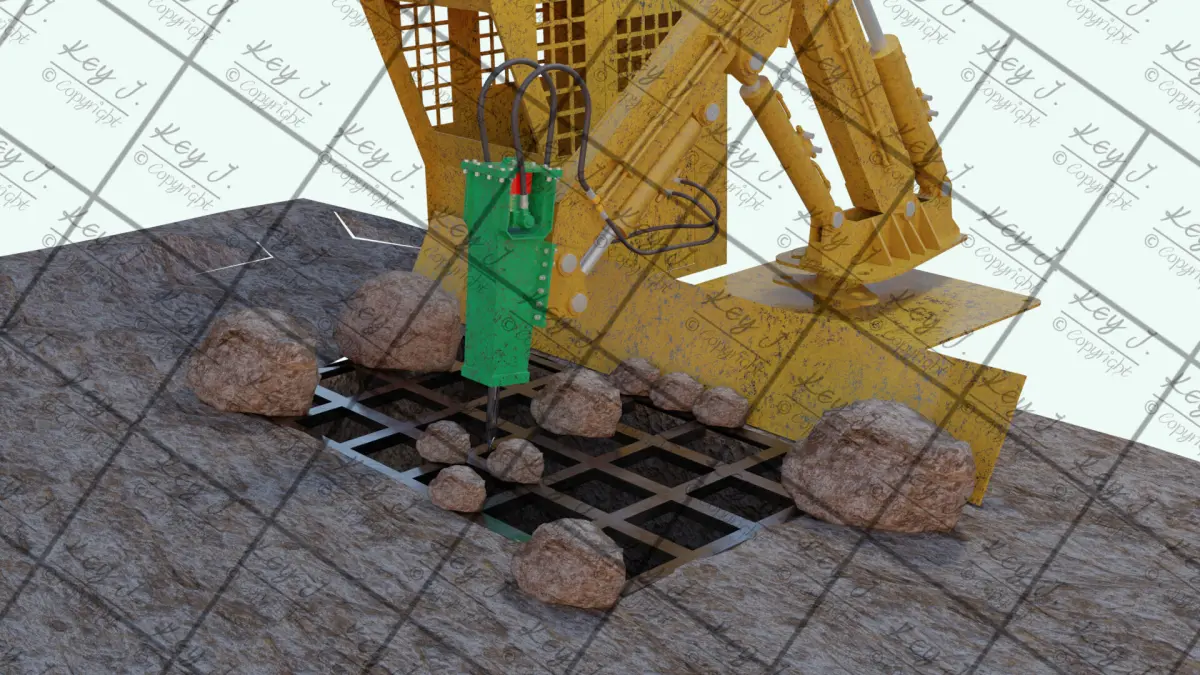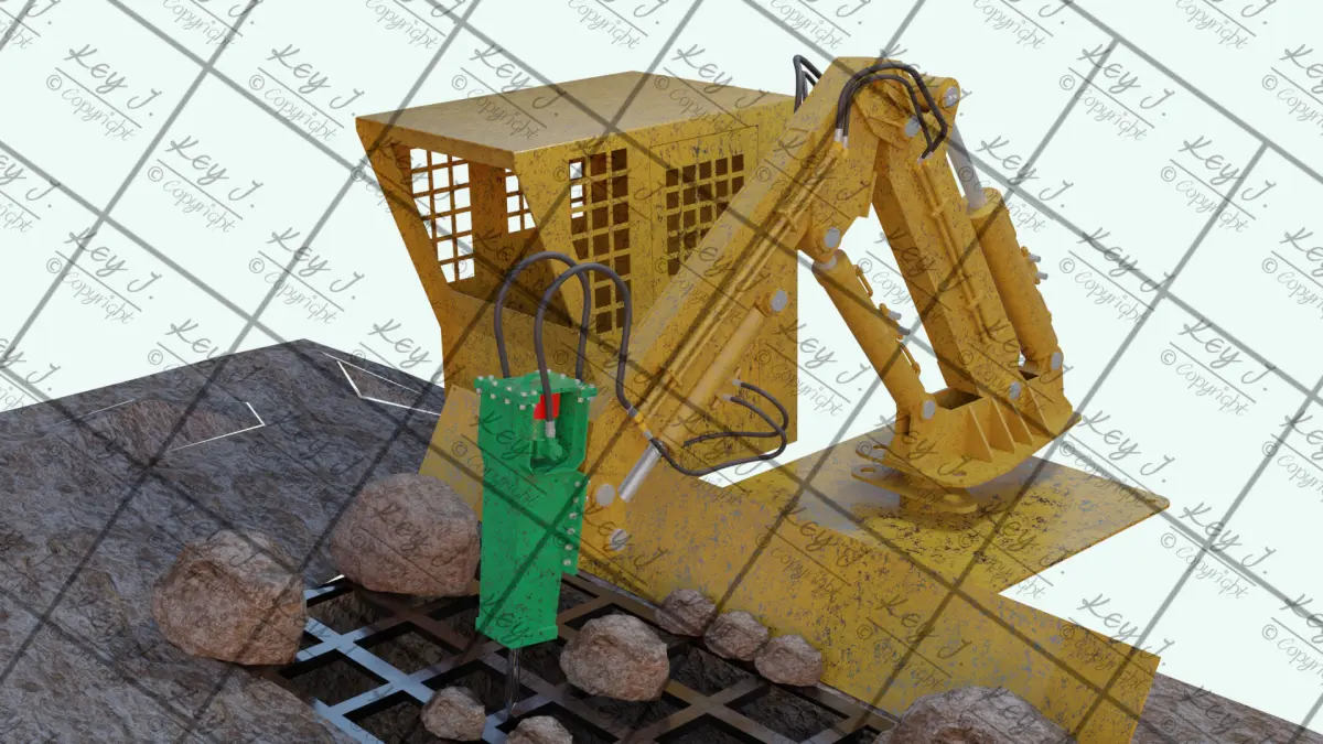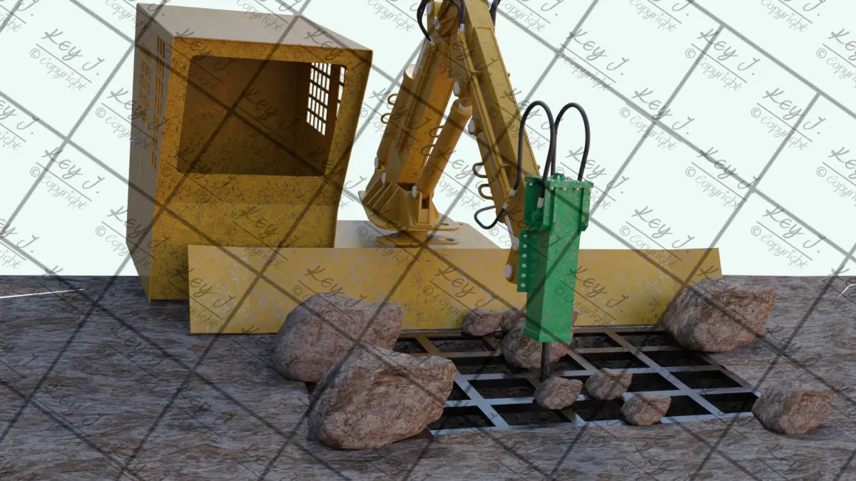 This is detailed design of Mining stationary hydraulic rock breaker with operator cabin including almost all parts that you need to render this model. You can use the CAD files provided here using any CAD software or 3D modelling and animation software.Some materials like: rocks, painted damaged are downloaded from BlenderKit addon.
