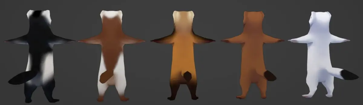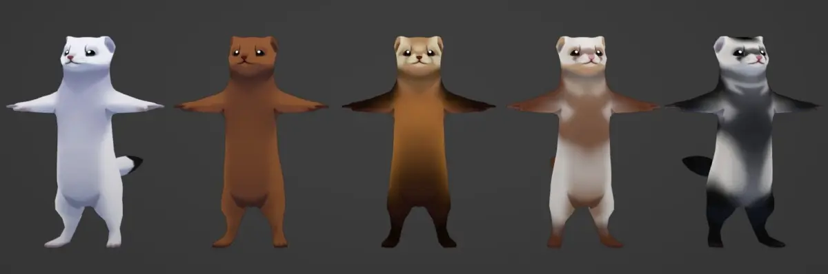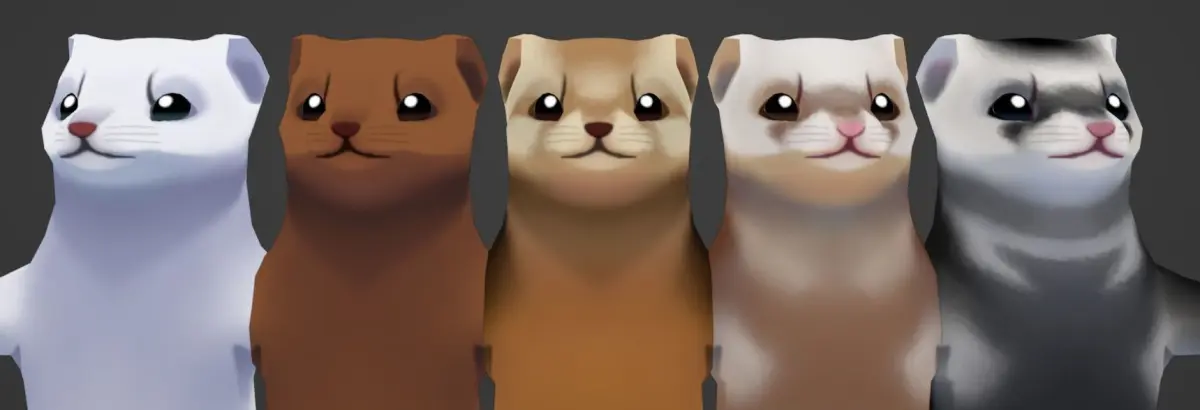 you can use then for be Mink / Ferrets / Otters / Mongoose in your game or whatever on your project. they're very adorable and they don't want material or light because they already have shadow on texture(with flat mode) but they will be good will material or lighting too if you want.
