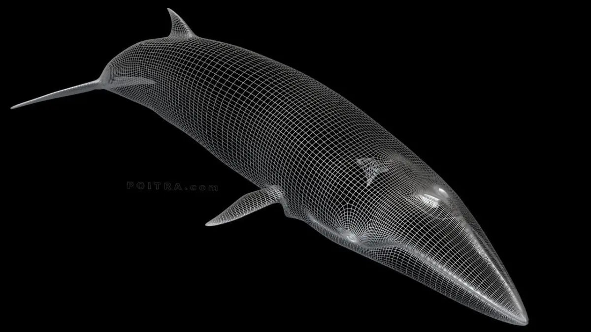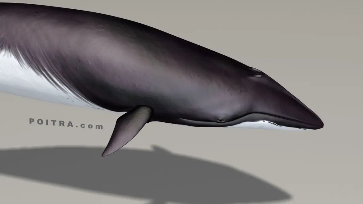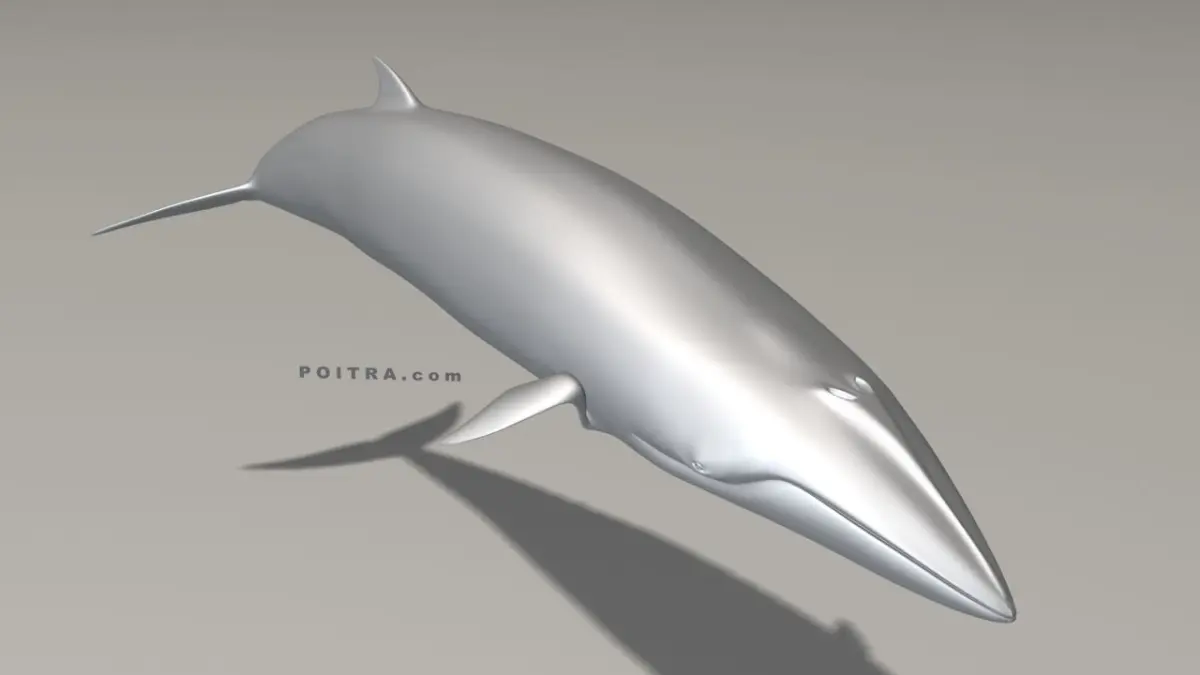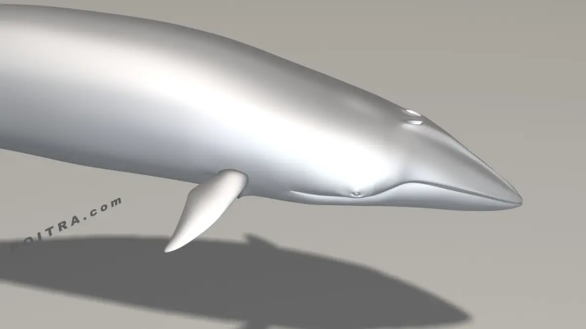 3D Model Minke Whale (Balaenoptera Acutorostrata, formerly Little Piked Whale), Adult Male (Pose 2), approximately 28' long (see details below). Pose 2 is an individual whale model taken from our 3 Pose Minke Whale Collection (sold separately).