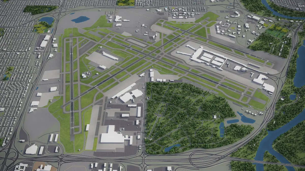 - Trees, vegetation, land-use and airport surface with the textures assigned