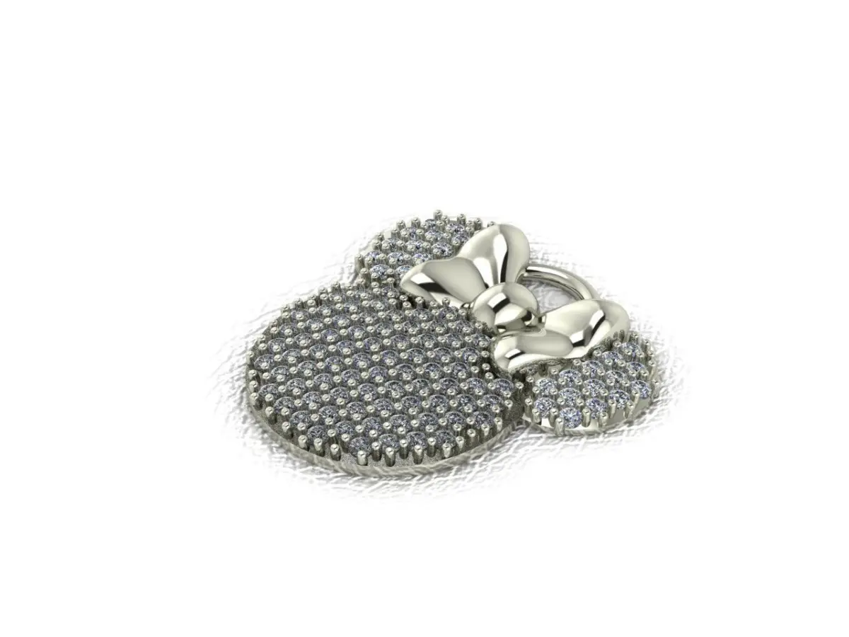 Minnie Mouse Medalcute Minnie Mouse medal designwith a total of 103 stones of 1.6 mmIt has a weight of 6.3 grams in 10k, 7.1 grams in 14kand 5.7 grams in .925 silverIt measures 25.8 mm wide by 26.5 mm high.elegant and discreet