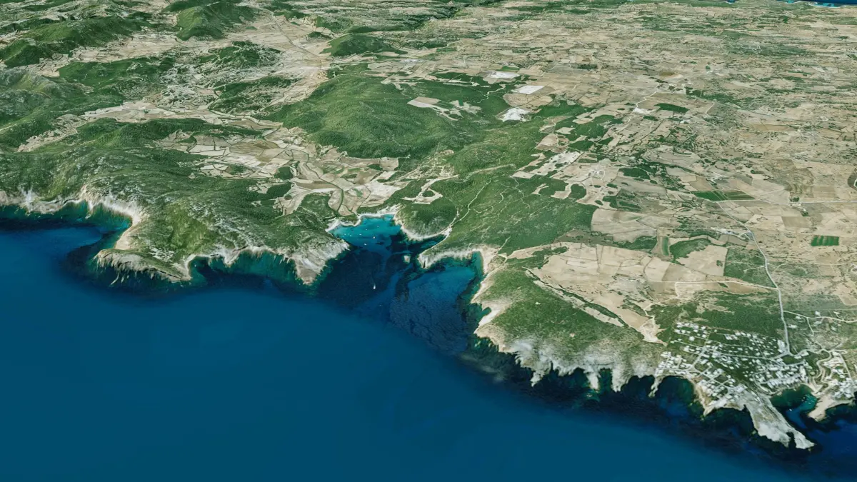 Minorca island 3d model terrain. 3d model island of Minorca with its landscape of mountains, beaches and forests.
