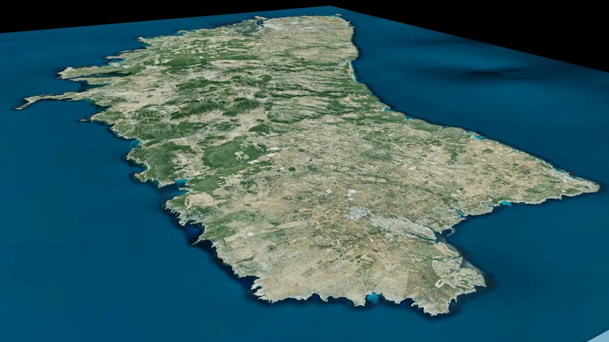 3d model landscape of Minorca Island, Balearic Islands, Mediterranean Sea, Spain.
