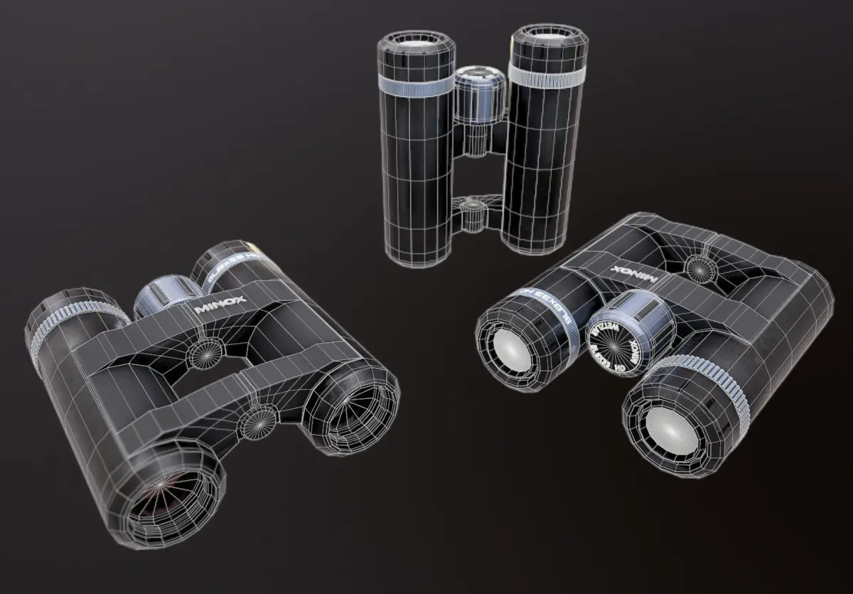 Modeled in Zbrush, Textured in Substance Painter, and rendered in Marmoset Toolbag 3. These binoculars are game ready, clean non-overlapping UVs with PBR textures
