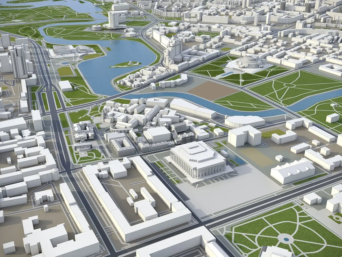 - Full city extents up to 100 x 100 km — or crop to the area of interest for better format compability and scene performance