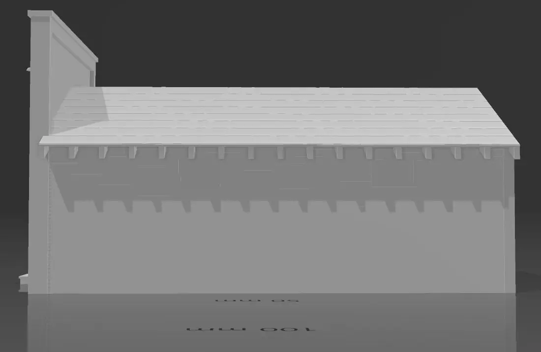 The model has been scaled to HO scale, but can be enlarged or shrunk to fit whatever scale you're needing. The building is hollowed out to reduce material usage. The original building's sign is painted directly on the siding, but I decided to have it stand out some for easier painting.