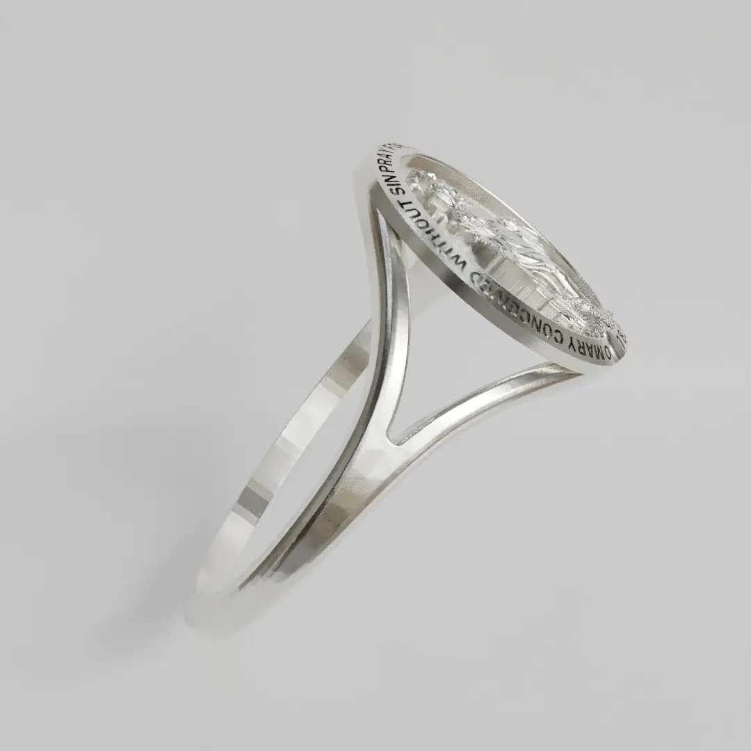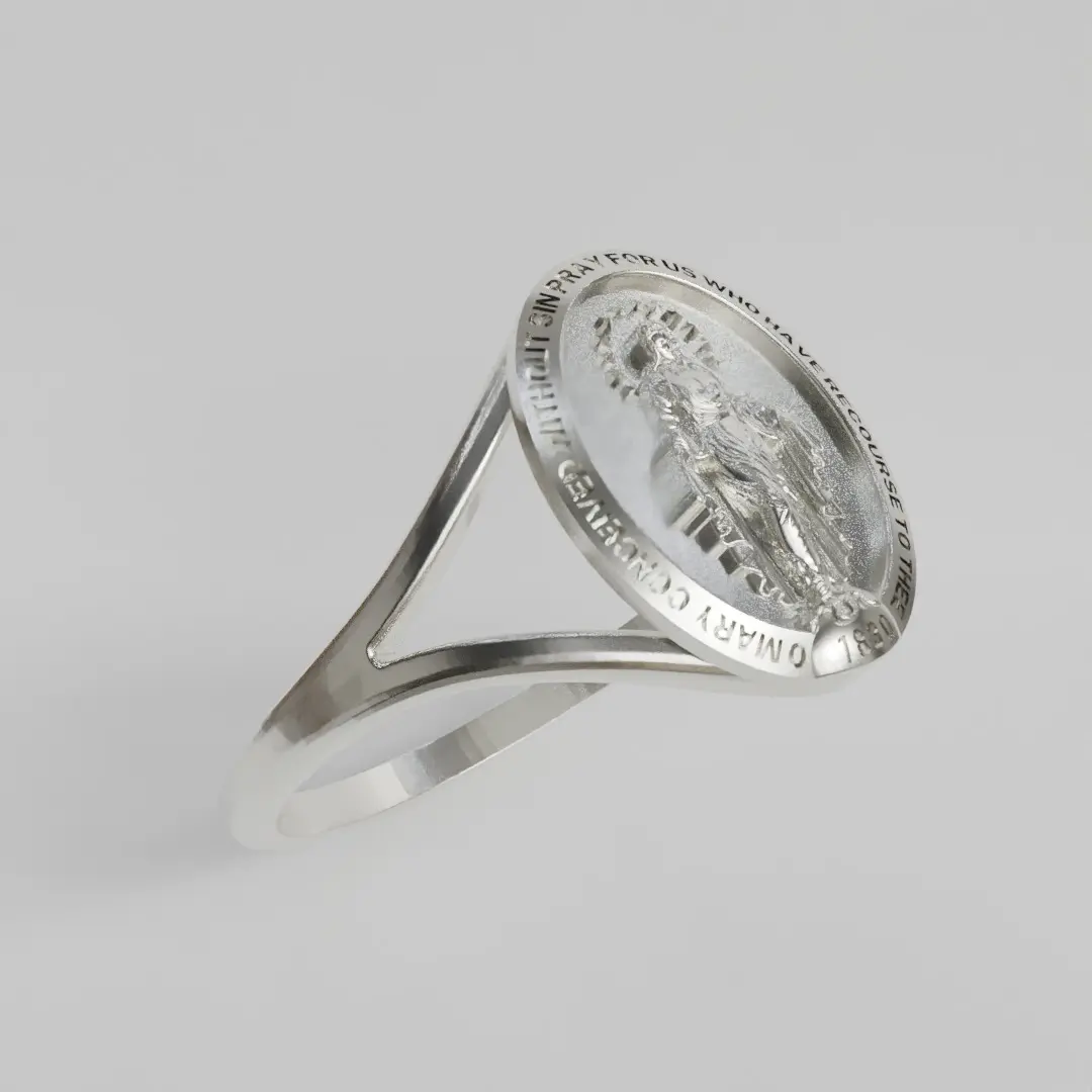 Simple ring with detailed miraculous medal in the center11 millimeters highprintable for jewelry