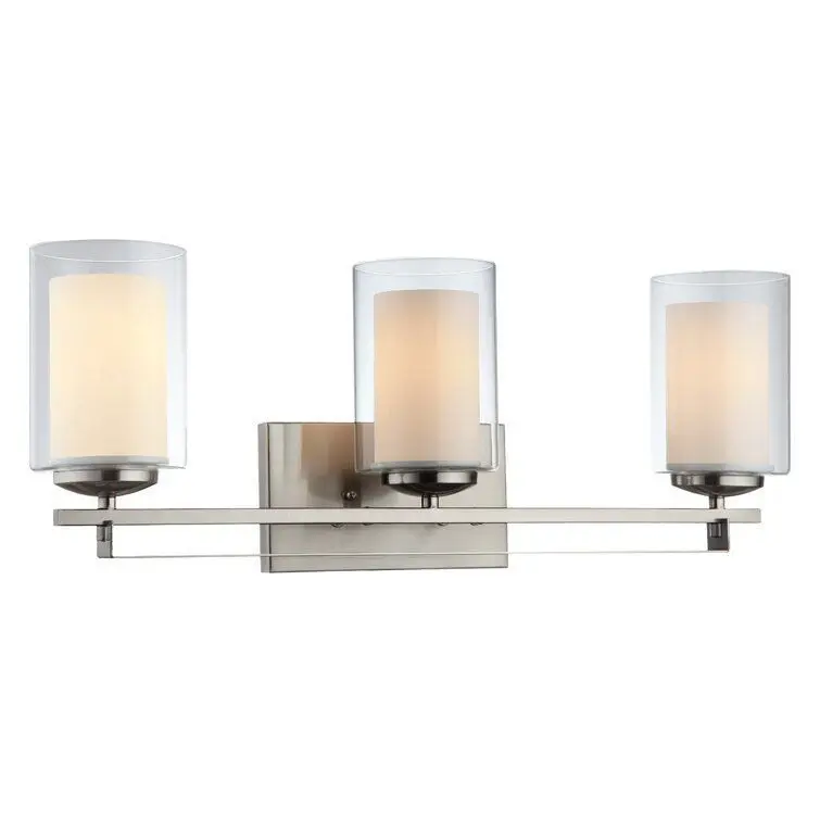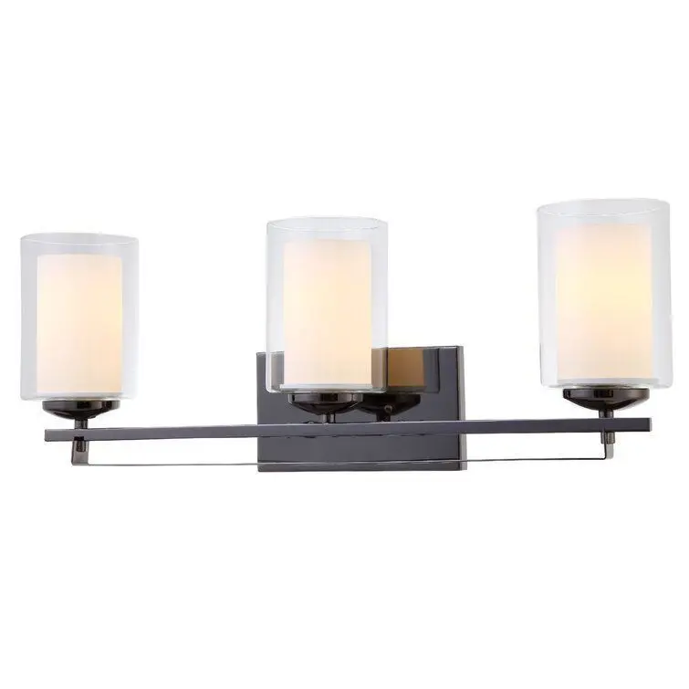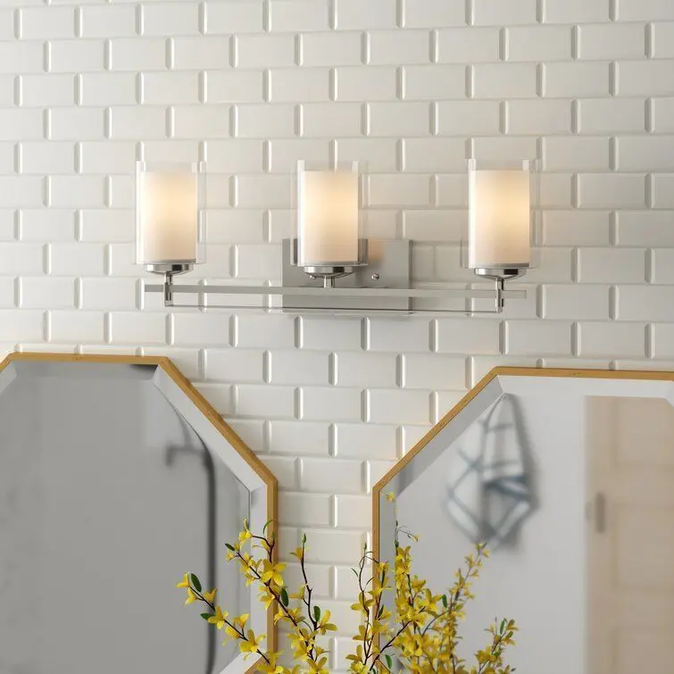 - Brighten your space in curated contemporary style with this three-light wall sconce. Crafted of metal in a fashionable finish, this fixture features a sleek, rectangular backplate complete with decorative screw caps and four short arms.