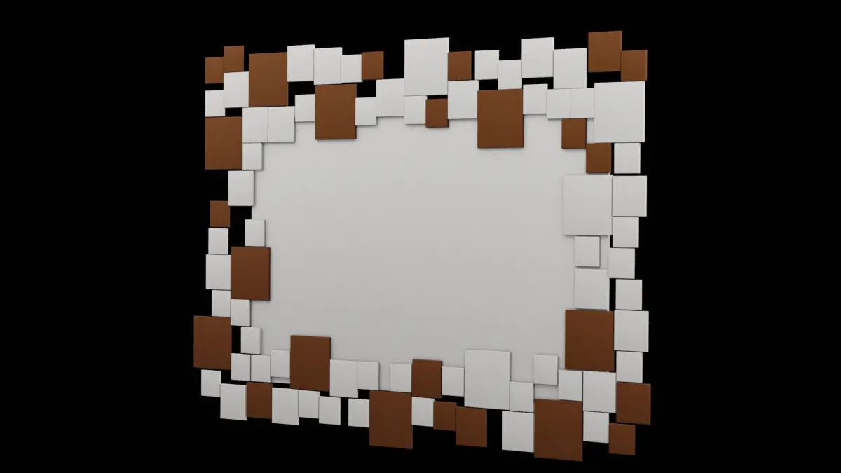 A wall-mounted mirror featuring an intricate geometric frame composed of interlocking polygons. The sharp angles and symmetrical design create a modern and sophisticated look, making it a perfect statement piece for contemporary interiors. The reflective surface is seamlessly integrated into the structured frame, enhancing both functionality and esthetics. Available in BLEND, FBX, and OBJ formats for easy use in 3D projects.