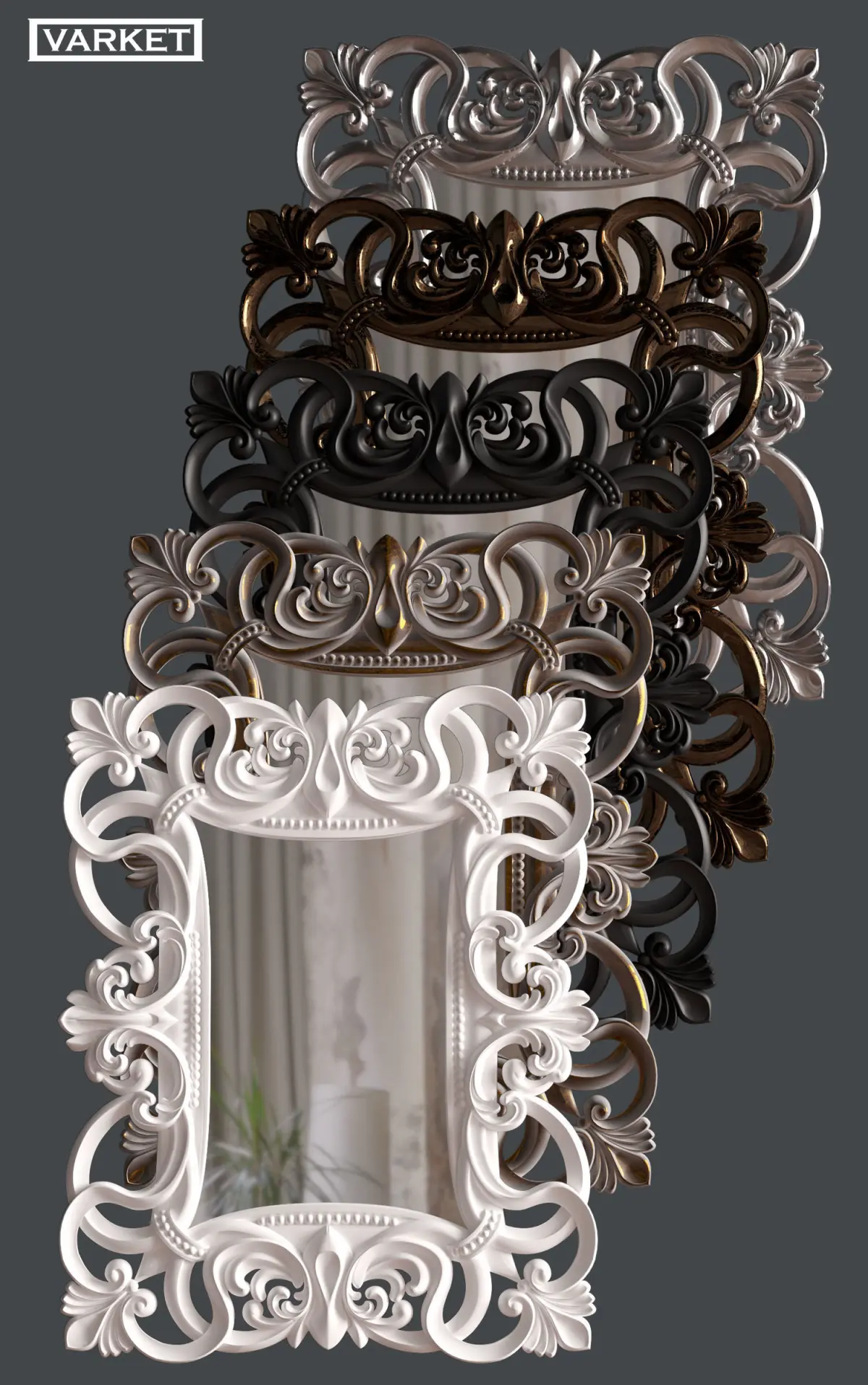 Mirror frame made in 3D max, and rendered,in corona and 4d cinema, V-RAY.The frame is made in a classic Baroque style.available file formats: 3ds max 2012 and later, FBX,. Obj If you like this product, please rate it. Thanks!