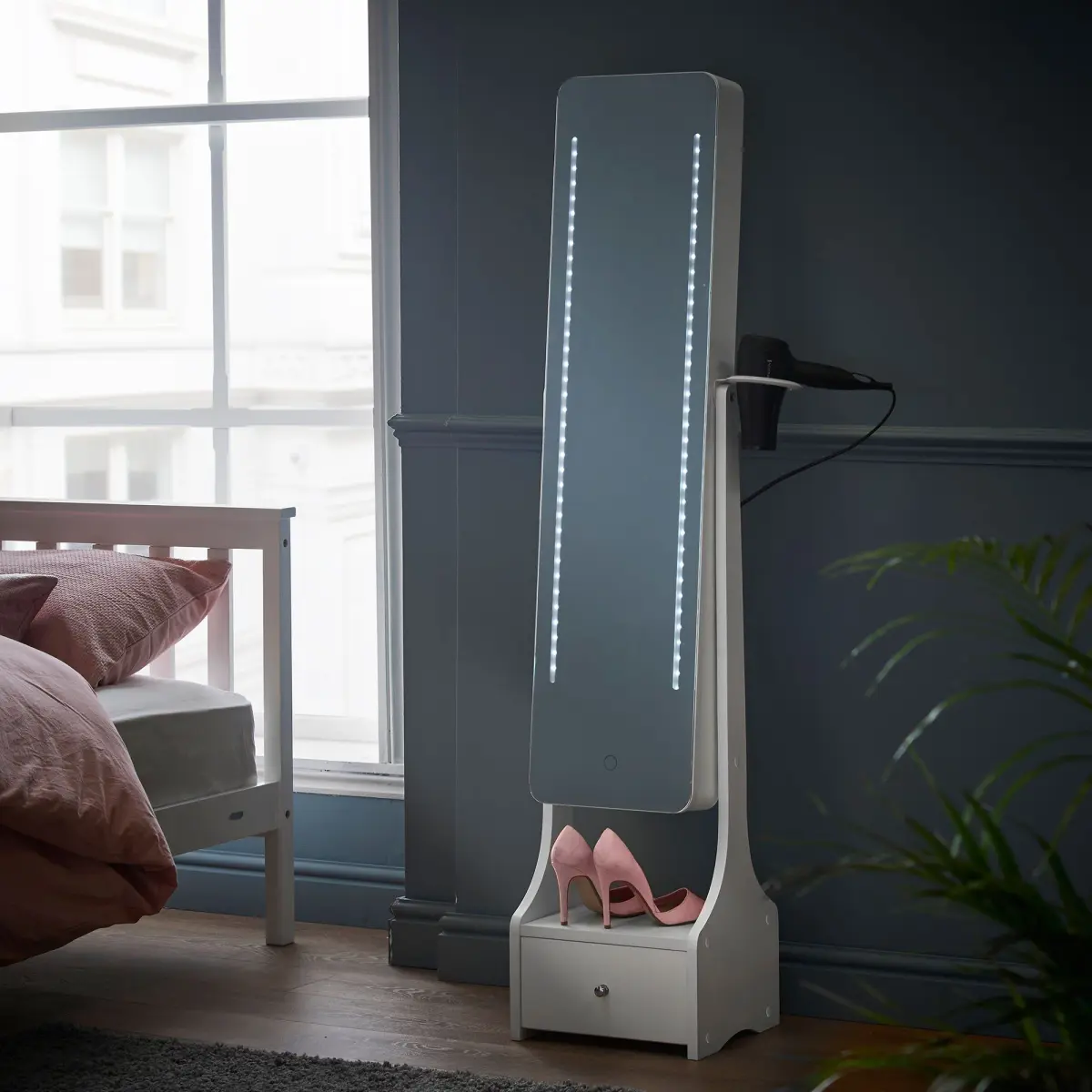 The door opens in the Local pivot modeProvider: https://andorra.desertcart.com/products/50926409-beautify-free-standing-full-length-mirror-with-storage-illuminating-armoire-with-led-lights-floorstanding-jewellery-make-up- cabinet-with-vanity-beauty-mirror-drawers-white-bedroom-furniture