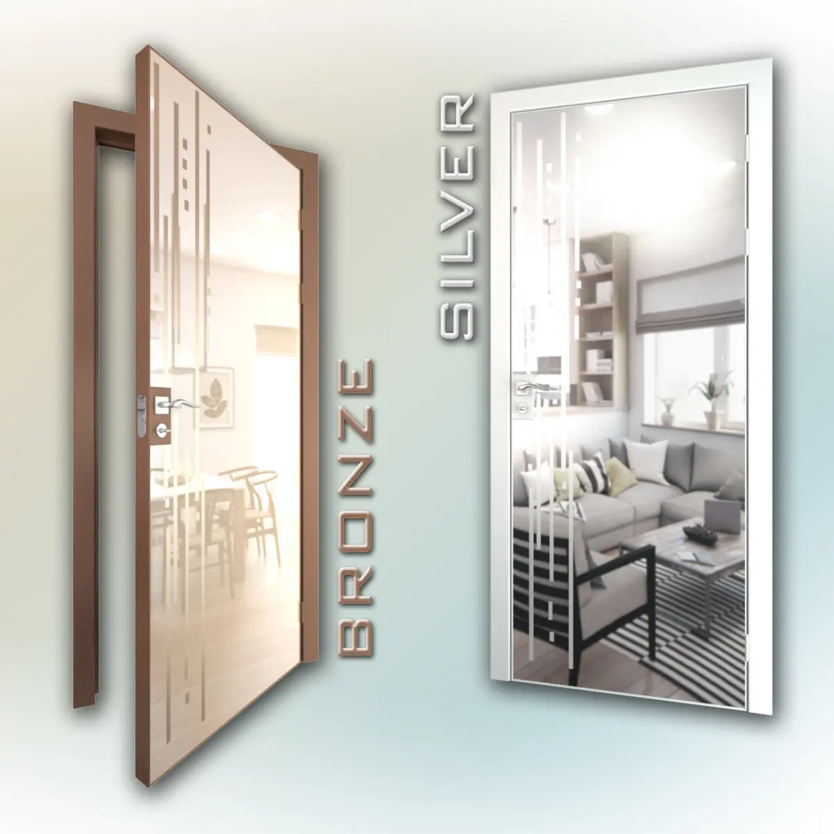 Double-sided mirrored door.Materias: mirrored glass, wood.