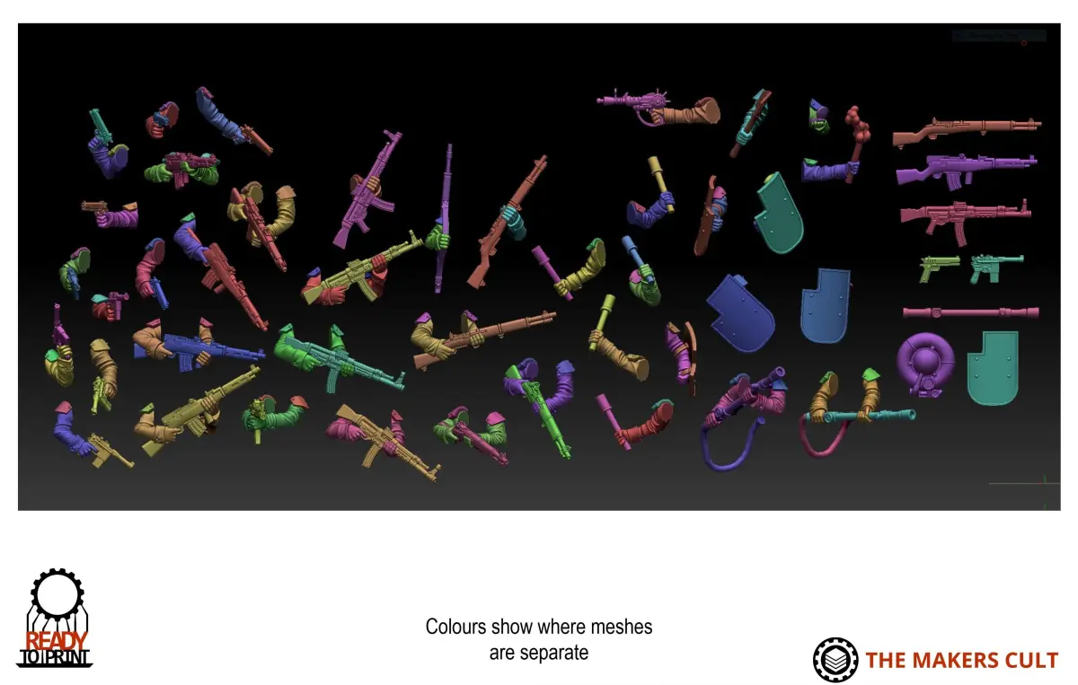 ARMS ONLY, these arms should fit Makers Cult guard scale bodies and human bodies. Should Work with most other designers guard scale bodies too. The arms are cut at the shoulders, with some meshes separate for easy customisation.