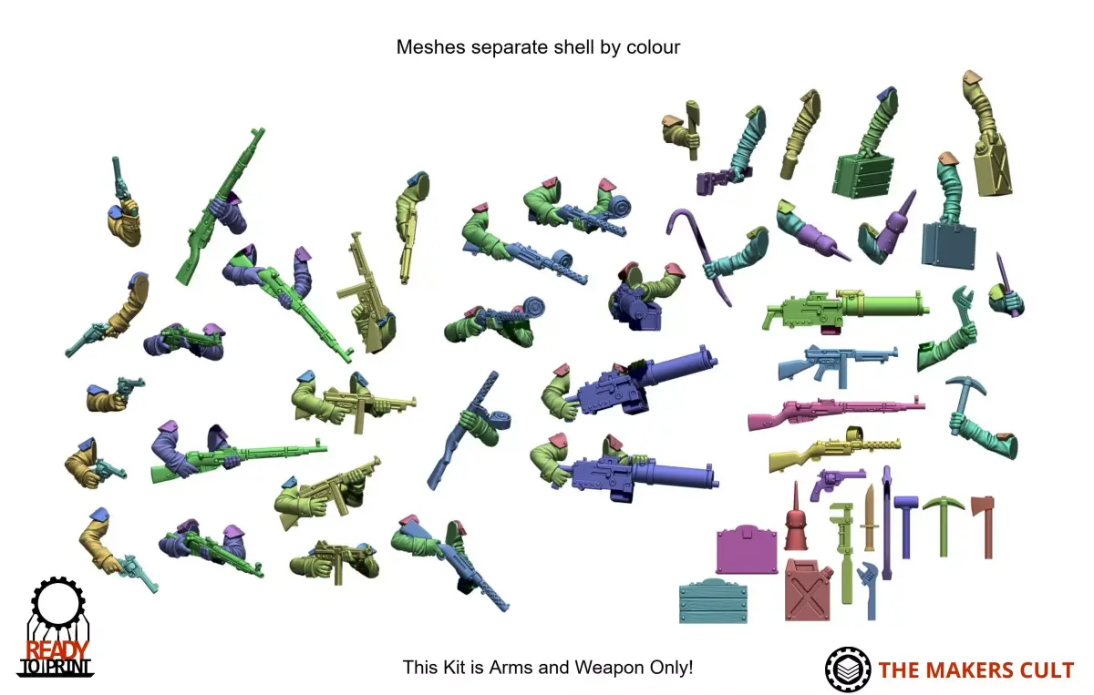 ARMS ONLY, these arms should fit Makers Cult guard scale bodies and human bodies. Should Work with most other designers guard scale bodies too. The arms are cut at the shoulders, with some meshes separate for easy customisation.