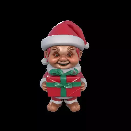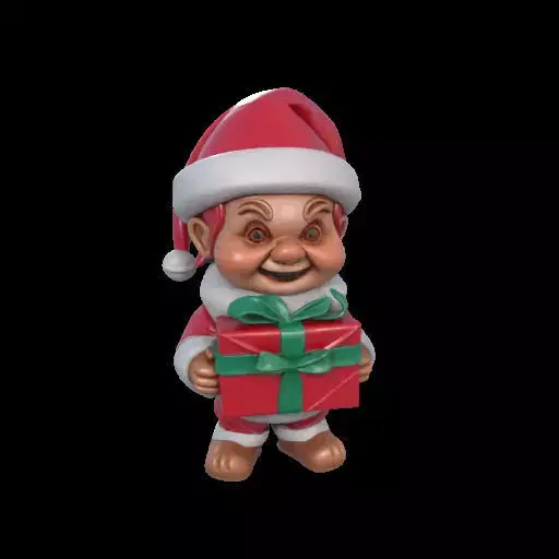 This 3D printed statue features a mischievous Chucky-inspired character wearing a festive Santa hat and holding a wrapped gift. His devious smile adds a playful twist to the holiday theme, making him a fun and quirky addition to your seasonal decor. The detailed design includes a brightly wrapped gift with a ribbon, and his joyful expression brings humor and charm to any Christmas display. Perfect for those who enjoy a unique take on holiday decorations
