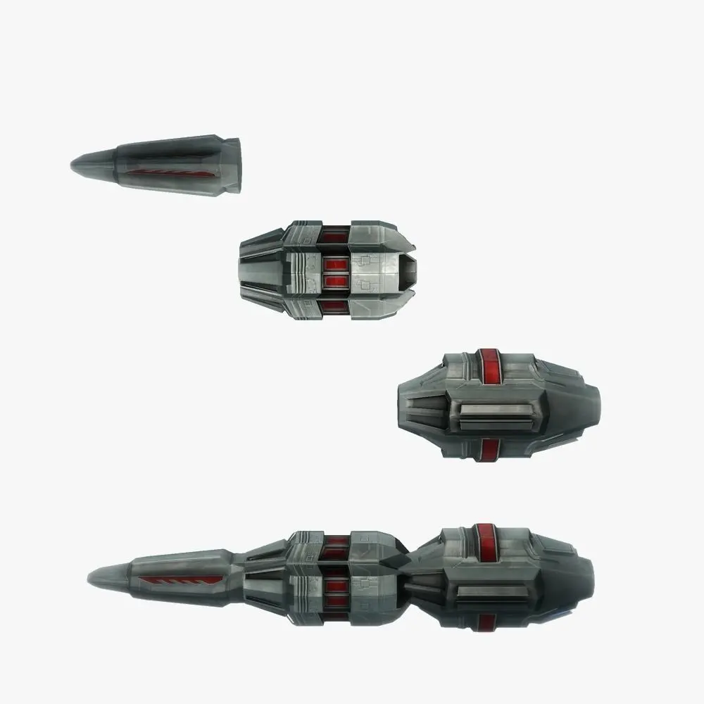 Low poly and game ready model of Sci-fi rocket; Includes 2048x2048 .png textures; Consists of 3 objects and 1 material. Each material includes UV, textures and maps; Textures and maps included: Diffuse, Normal, Specular, Glossy, Emission; Original file is .blend; Also includes Game ready Unity scene; Made in Blender 2.78; Rendered with Unity 5;
