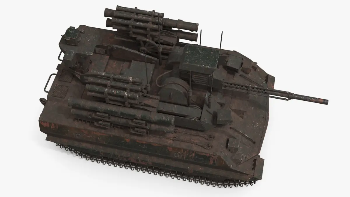 Equipped with missile launchers and a powerful cannon, this fighting vehicle is built to neutralize enemy aircraft and helicopters. Its robust armor ensures resilience against enemy fire, while its tracked mobility allows it to traverse various terrains with ease. The model features realistic detailing of the weapon systems and structural components, providing an authentic representation for military enthusiasts and developers.