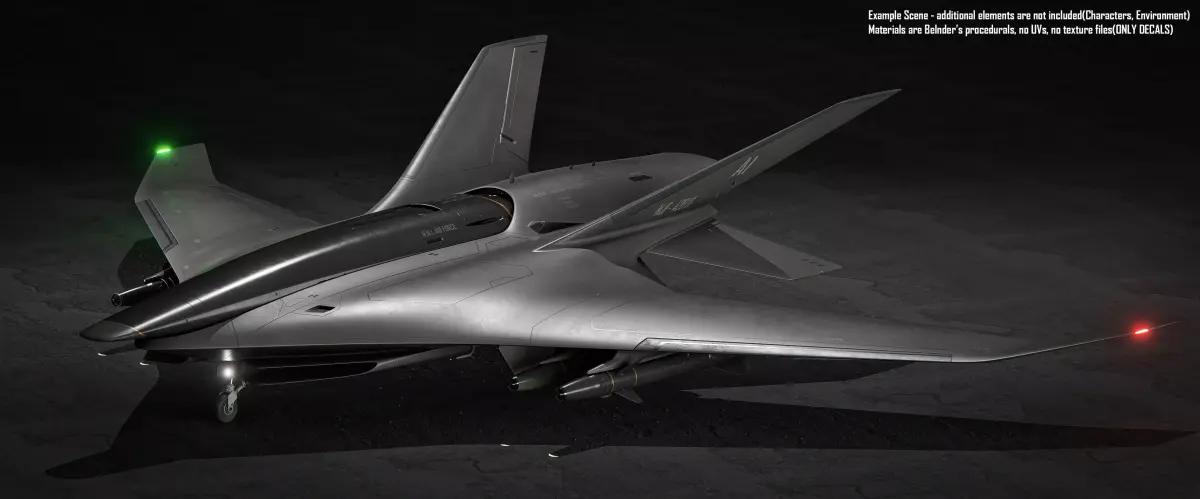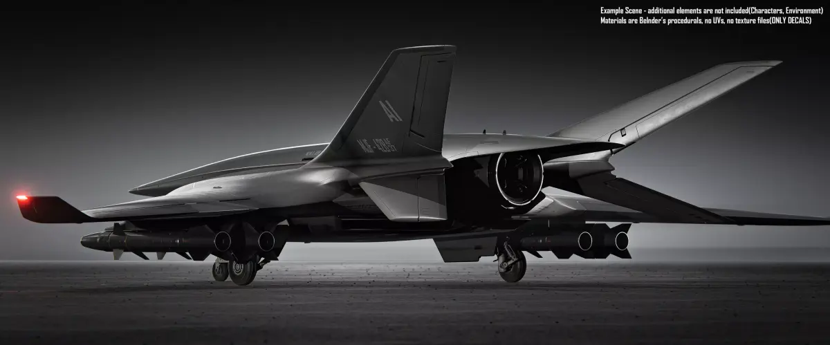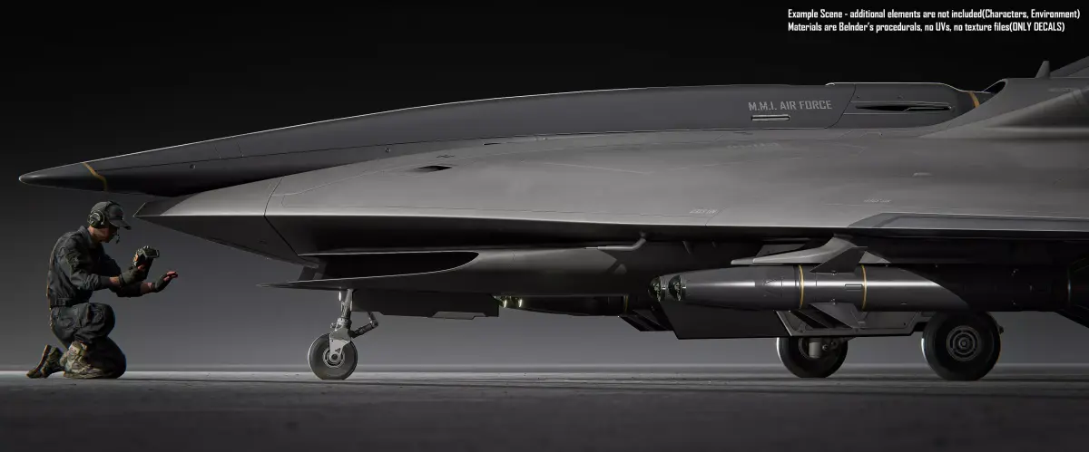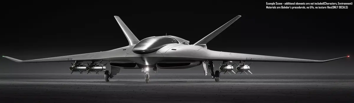 Final Scene in Blender 5.0 using Cycles Render.Warning!Model doesn't have any built in landing gear! Meant to be used only in the sky.Model doesn't have any UVs, all materials are procedual in Blender with additional decals, textures included in blender fileThis model has Plasiticity native file.