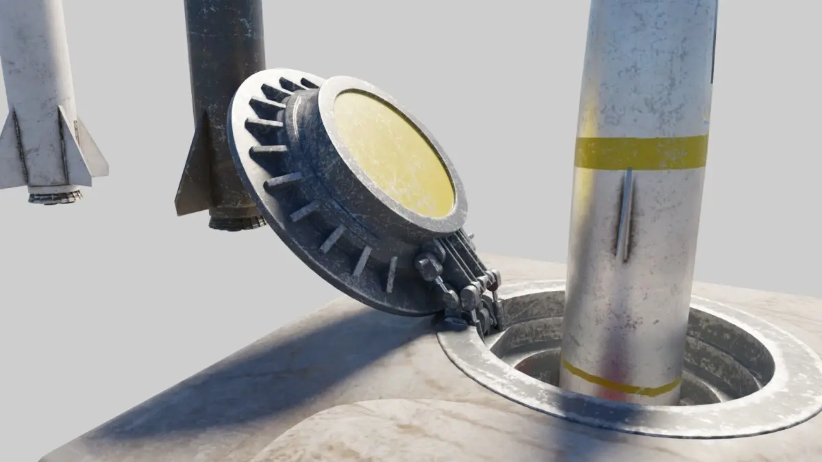 Missile with 2k pbr textures 3 variationincludes missile launch area