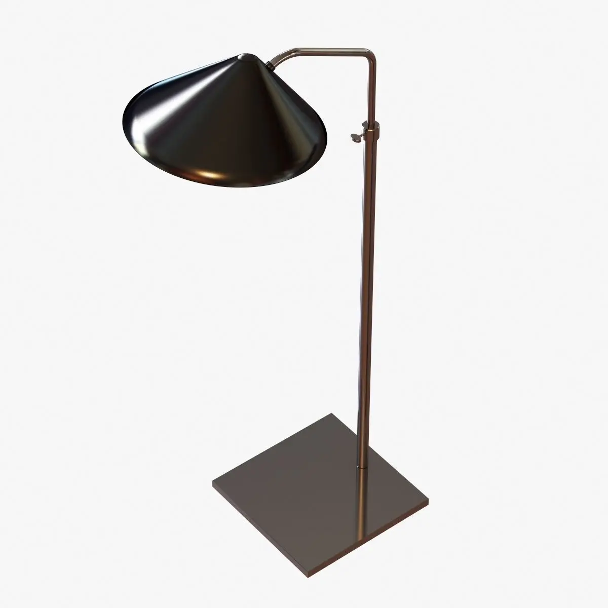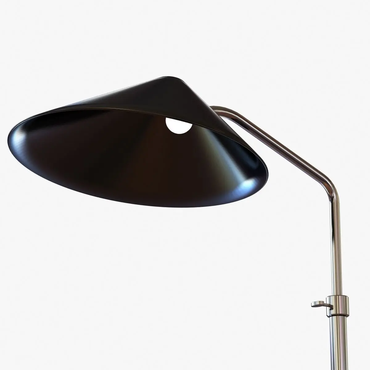 Exclusively ours. Inspired by 1970s Italian design, this adjustable floor lamp featuring a conical black metal shade and a polished nickelbasemakes a modern statement. Slender, stylish, and practical, too: It is ideal for directing task light where needed and is well sized for compactspaces. FEATURES