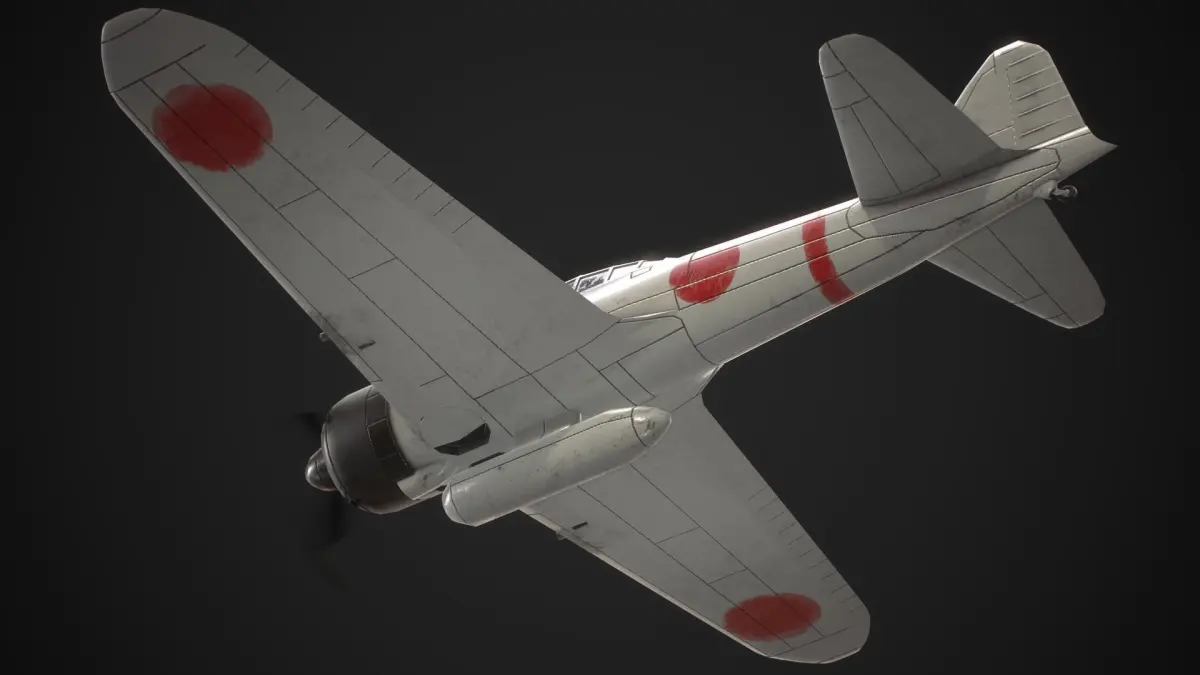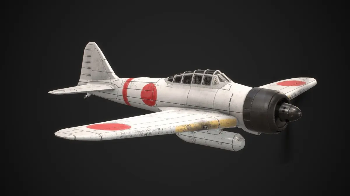 Low-poly World-war 2 era Japanese fighter and ground attack aircraft Mitsubishi A6M Zero model with real-world proportions and PBR materials, ready for your game or rendering project.