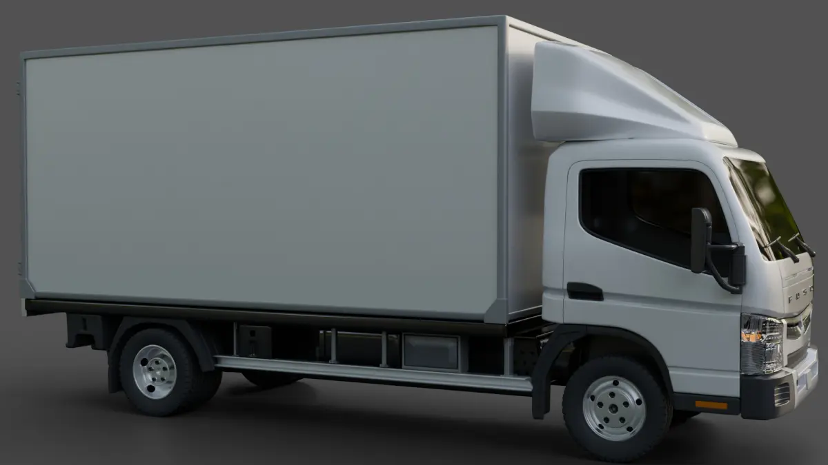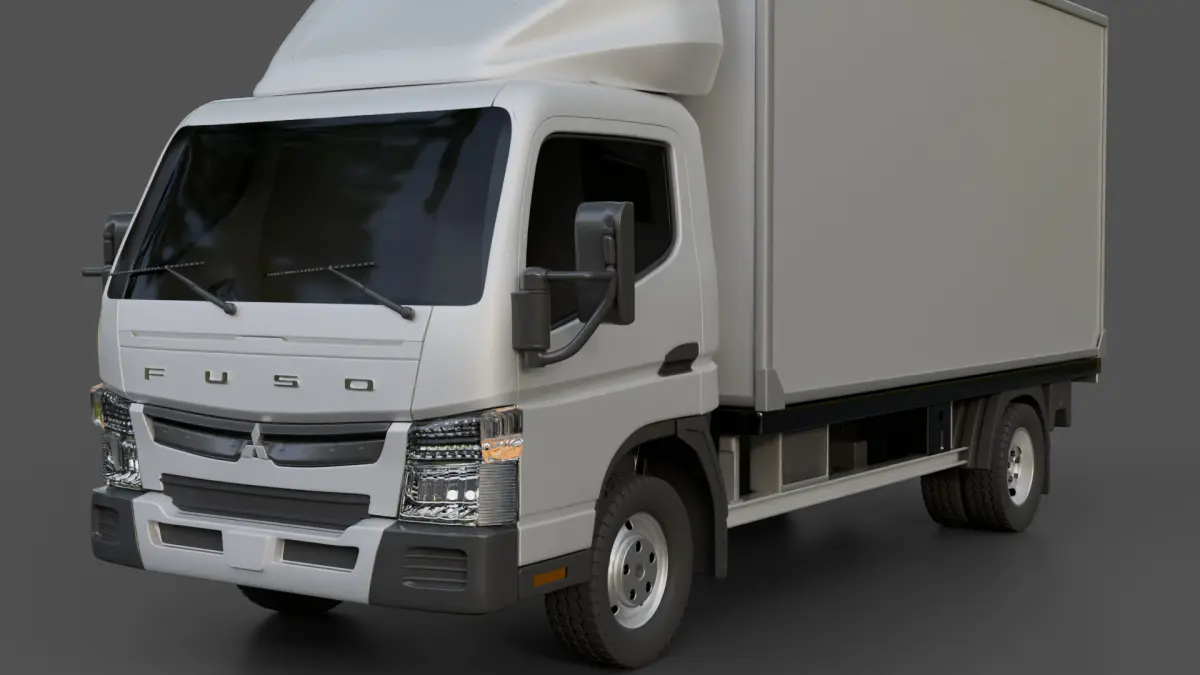 3D model of the Mitsubishi Fuso Canter 515. Created in Blender and already rigged using the Rigacar addon. It's worth noting that the model does not have an interior. The Blender file includes all materials, which are primarily procedural, so no textures are provided. The .fbx and .obj files do not contain any materials, but they do have material slots assigned. The model is also scaled to real-world measurements and is ideal for rendering and animation, and can be optimized for games.