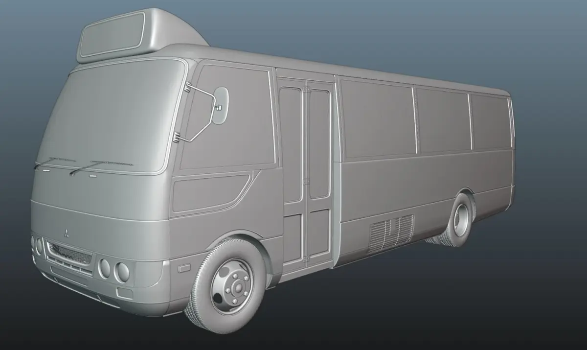 Exterior modeling of a Mitubishi Fuso Rosa with Hong Kong configuration.