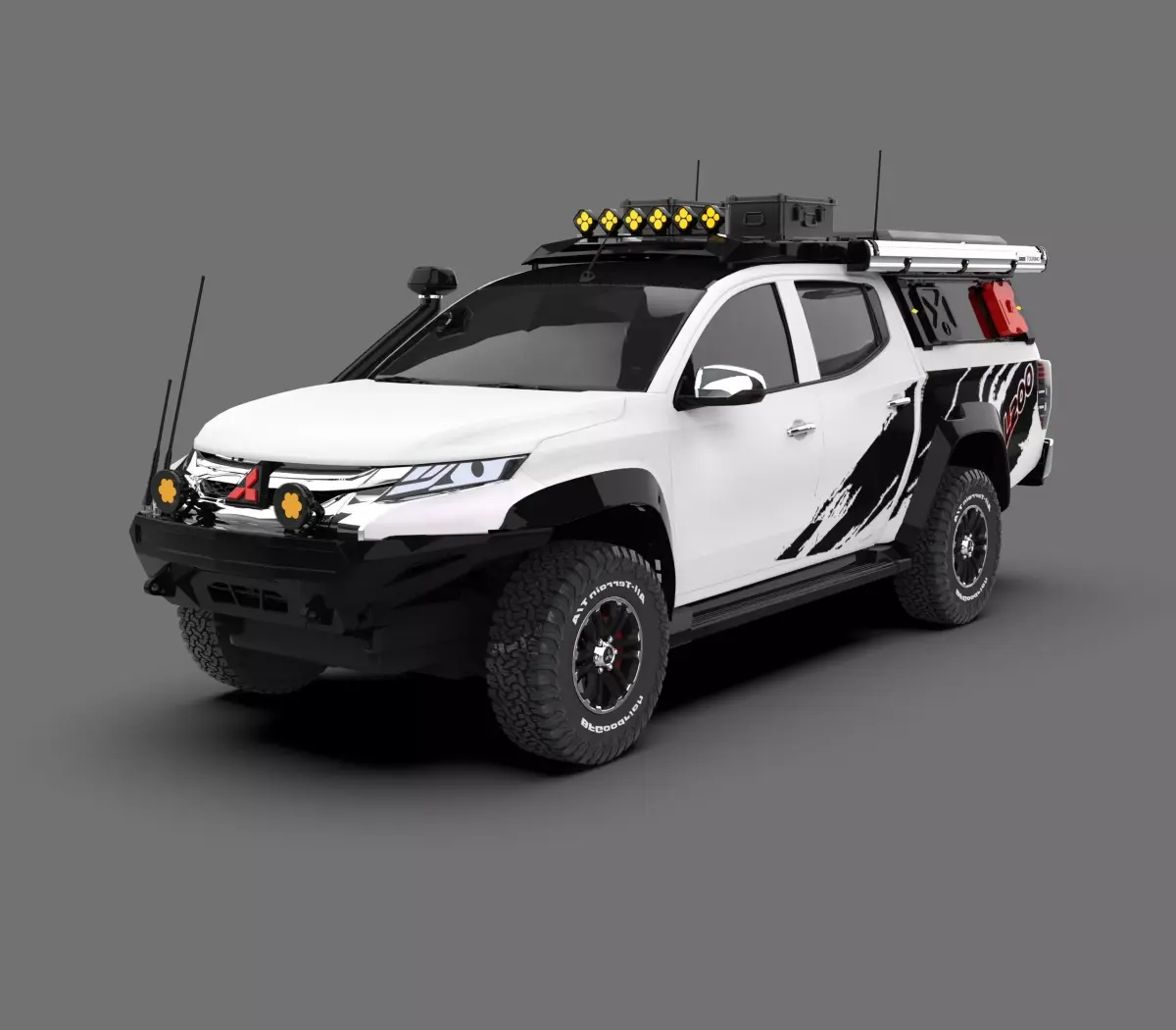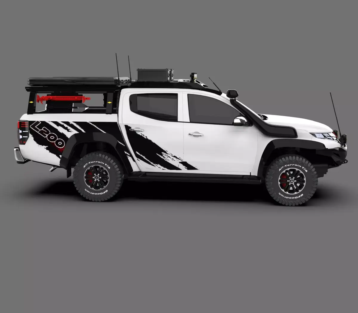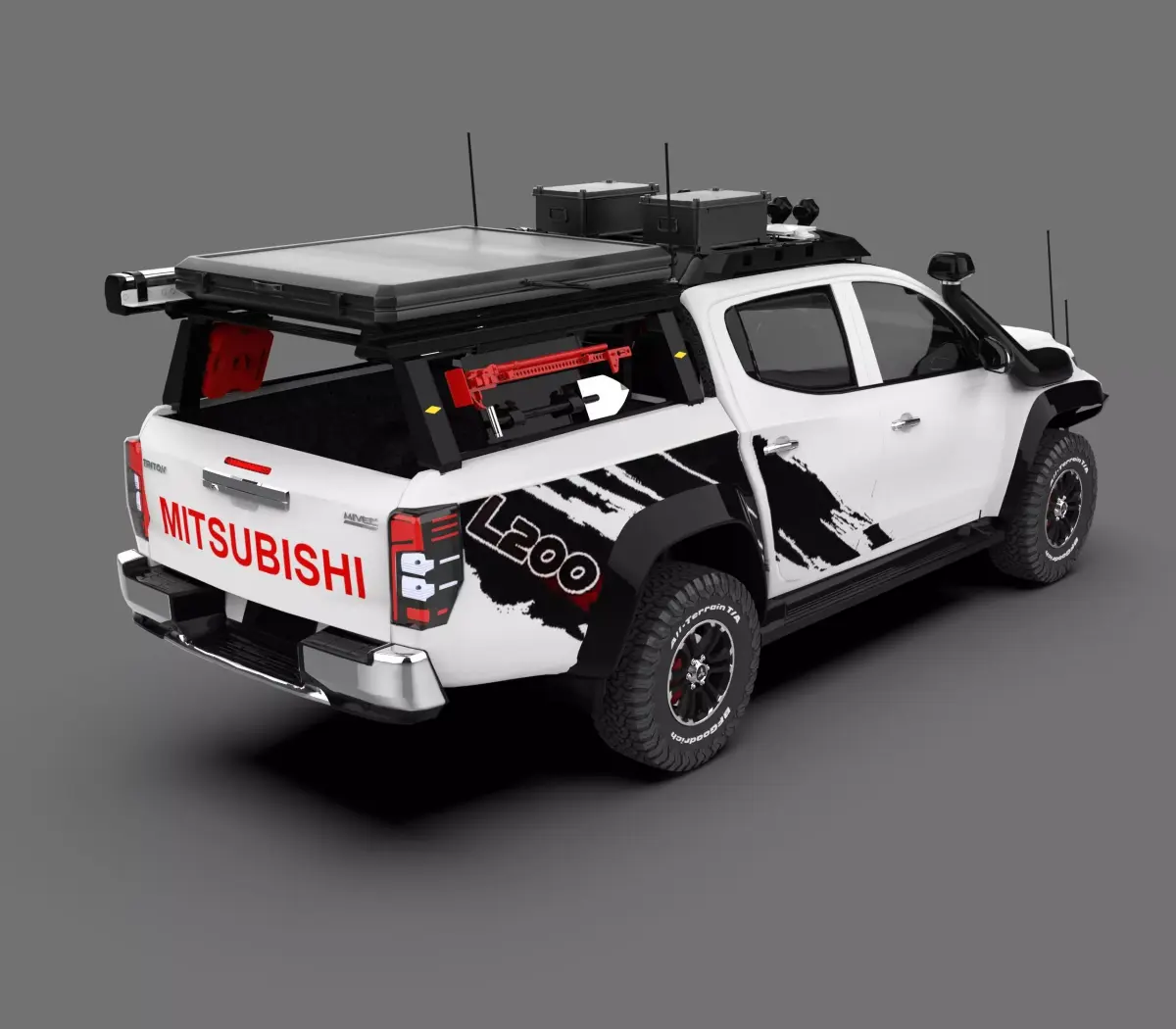 High-quality 3D model of the Mitsubishi L200 Off-Road, a durable and capable 4x4 pickup truck built for challenging terrains and adventure. This model accurately represents the tough exterior of the L200, featuring off-road modifications such as lifted suspension, rugged tires, and reinforced bumpers — perfect for expedition, overlanding, or rally-style visualizations.
