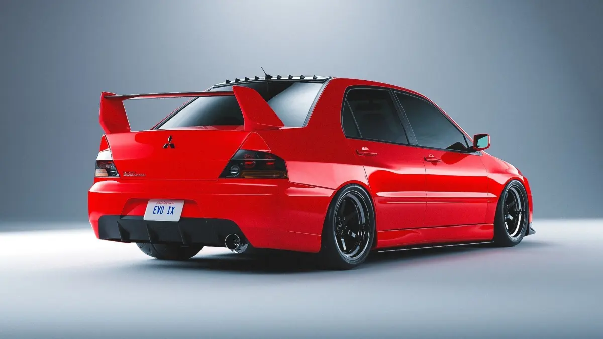 3D model of the Mitsubishi evo 9 with cosmis XT-006R wheels and toyo tires