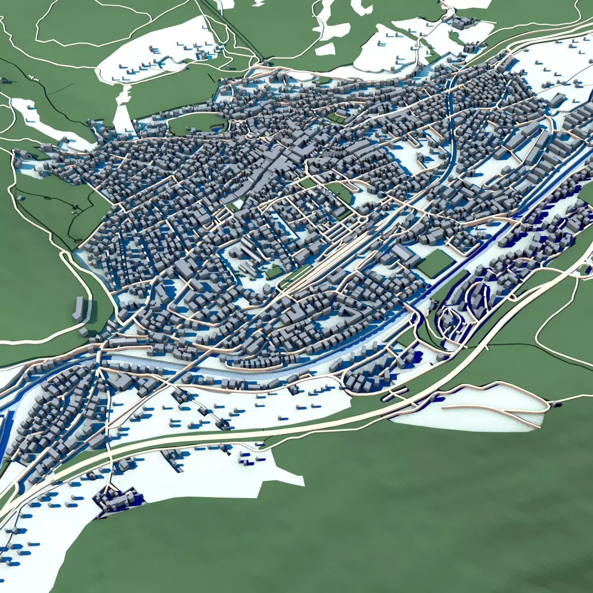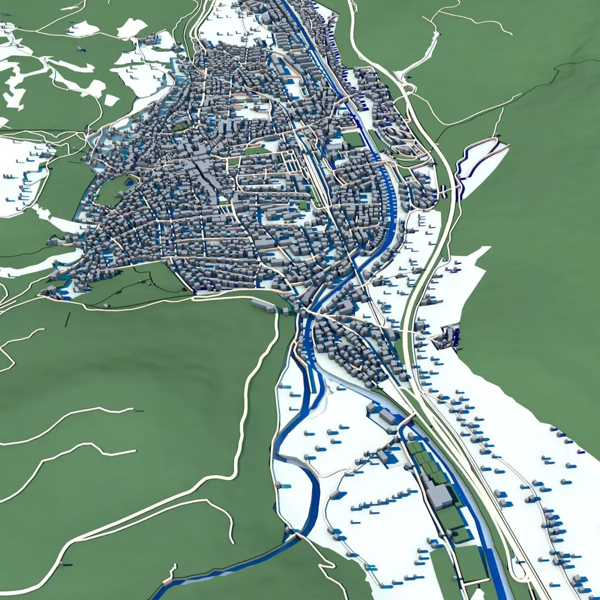 The .ZIP folder contains separate .STL files – buildings, water, vegetation, base etc.