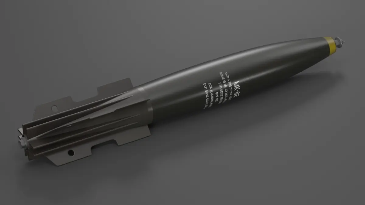 MK-82 General Purpose Bomb is a three-dimensional model of an unguided general-purpose aerial bomb, commonly used in military aviation for explosive activities and operations.