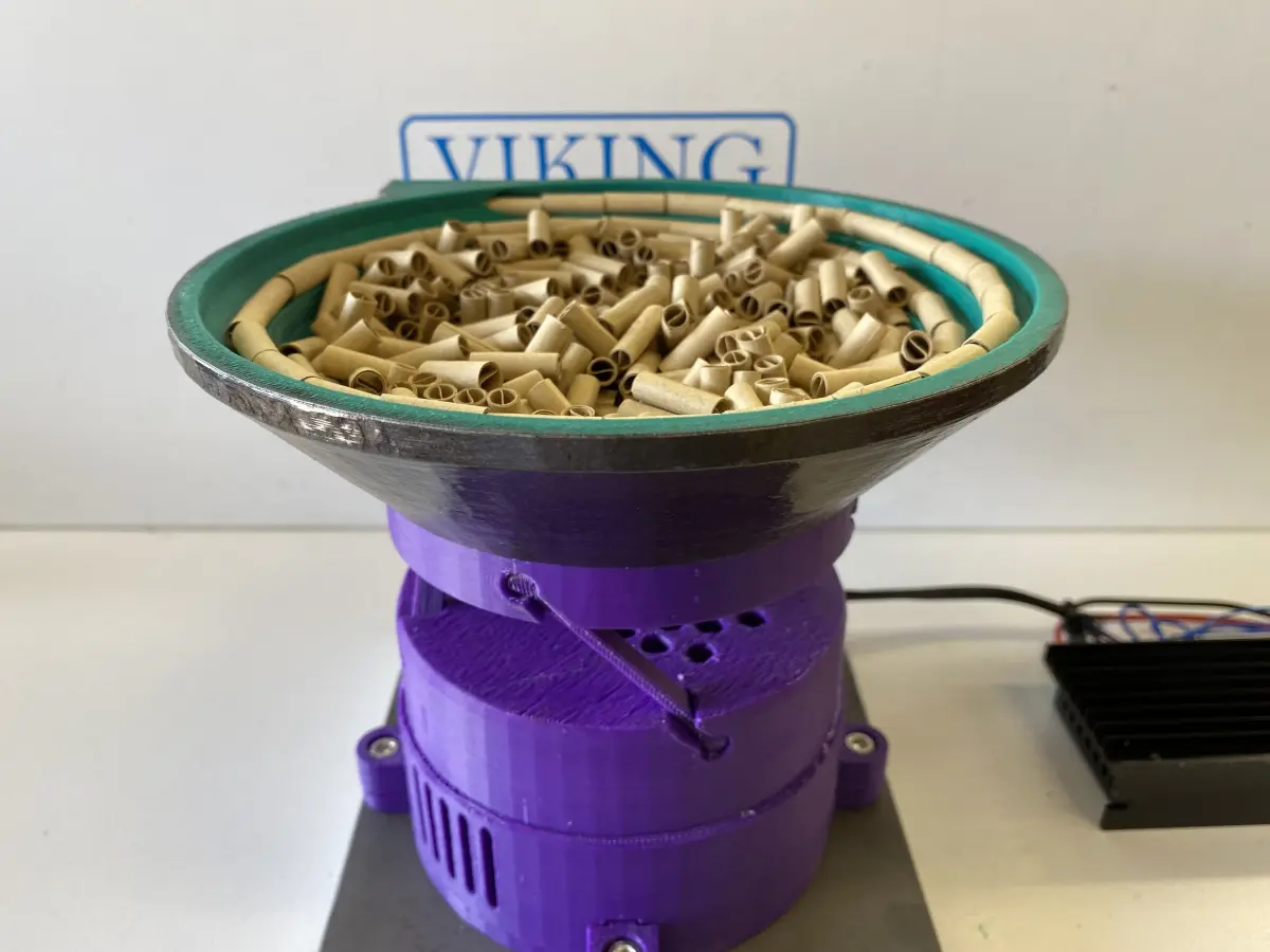 This is the current full release of our vibrating bowl feeder. Dimensionally this is very similar to our MKII feeder, but performance wise it is miles ahead. If you are thinking about using one of these printed feeders for a practical application, then this is the one for you!