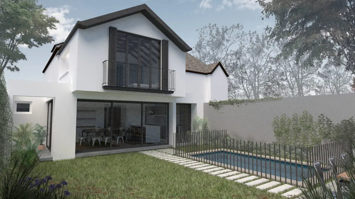 This is the 3d model of a family house. It has all the living spaces of a true house and comes with all artefacts an furnitures. The exterior spaces are also integrated but without vegetation. The textures and materials are inbedded in the sketchup model, so you can import it directly in your render engine. If you want to edit or hide some elements, it's simple because the layers (tags) hierarchy is organised by floor number and category.