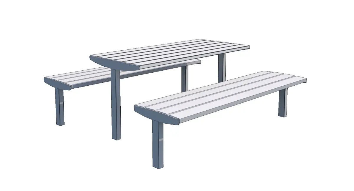 Modeled to Scale and dimensions:Bench is: 6'-0L x 1'-7W x 1'-6HTable is: 5'-0L x 2''-4W x 2'-4H
