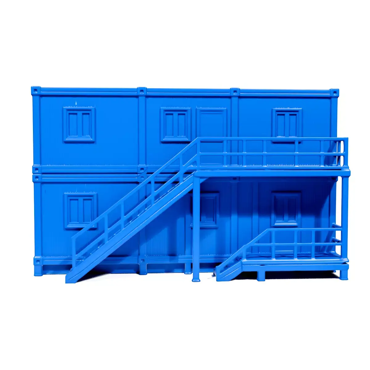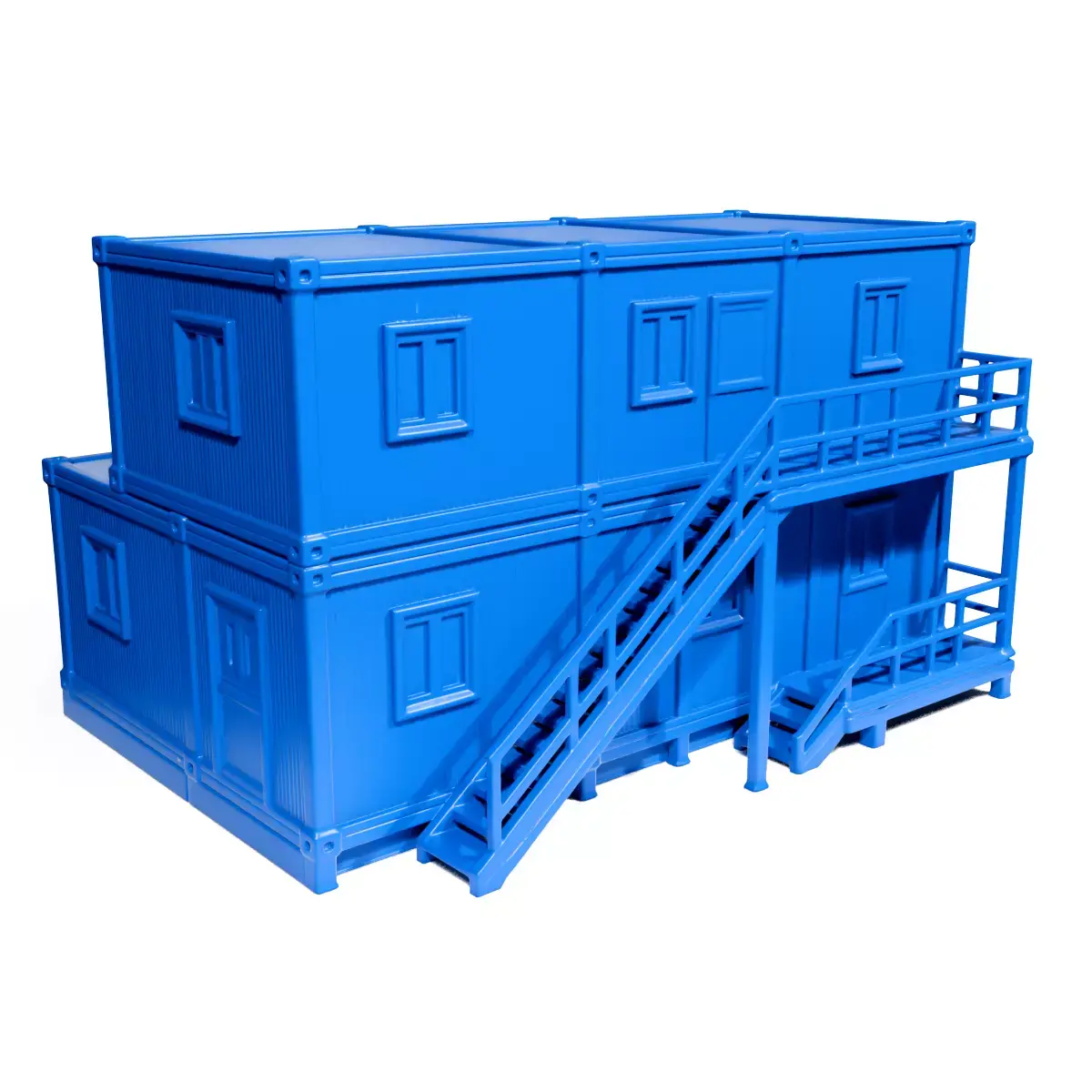 This mobile barracks model is designed to replicate the concept of a modular and portable living space, often utilized in military or temporary setups. The design features modular blocks that can be easily stacked and transported.
