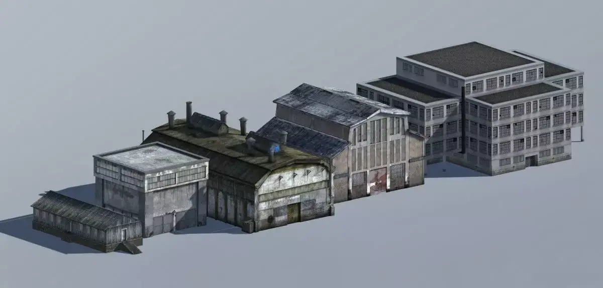 17 building models (FBX/GLTF/OBJ depending on what you export)