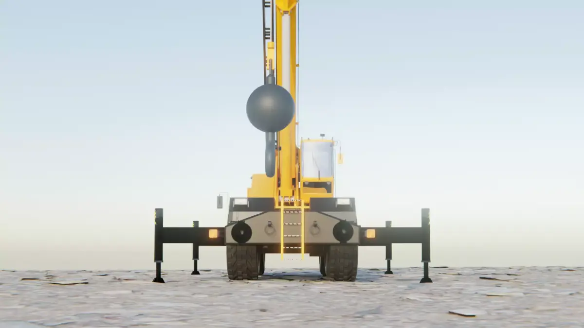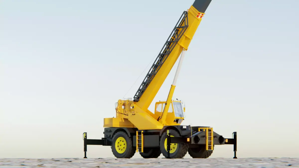 The crane includes extended stabilizer legs, making it ideal for scenes that require lifting, industrial work, or building construction setups. The mesh is optimized with clean topology and comes with wireframe preview renders.