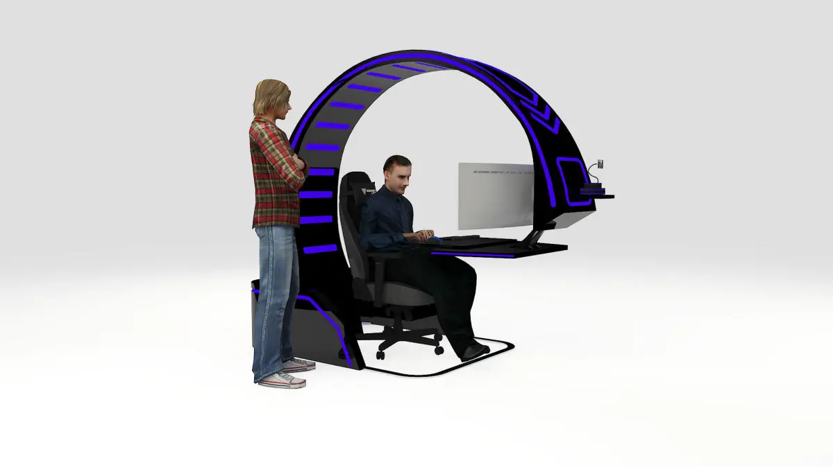 3d design concept for mobile gaming pod. Best for game show, cosplayer events and exhibition. Saving time to design. Comes with scale dimension spec for fabrication build up.