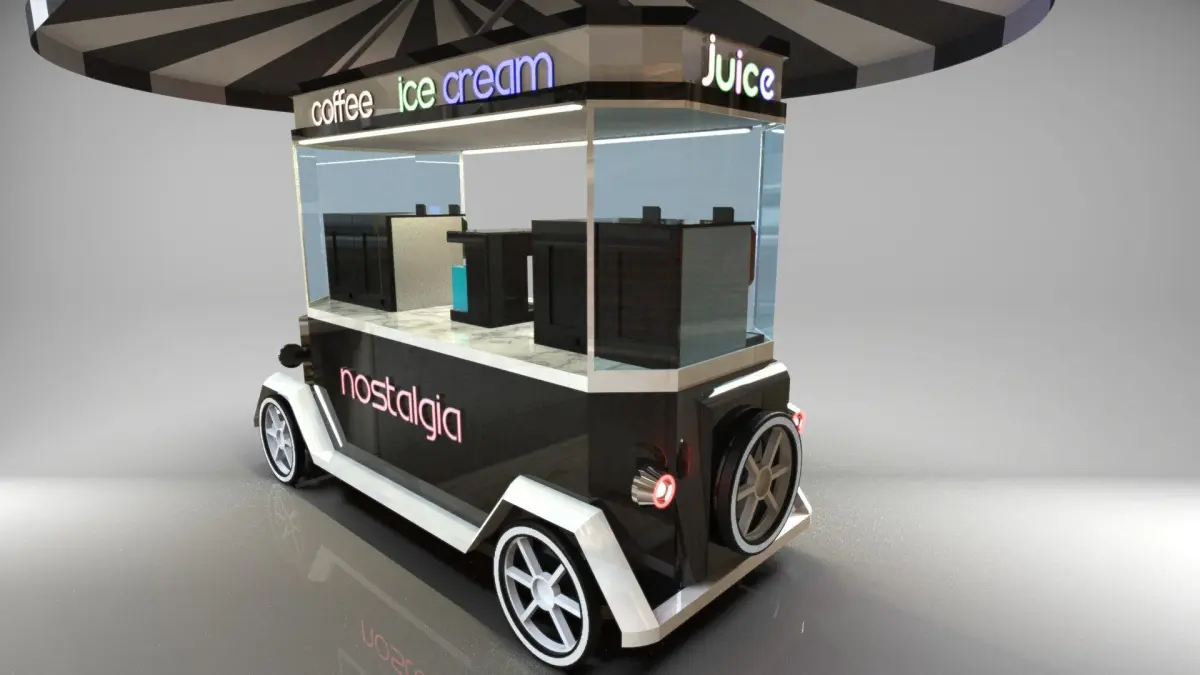 This is a beverage and ice cream cart model.( coffee, tea, ice cream, juice.....)