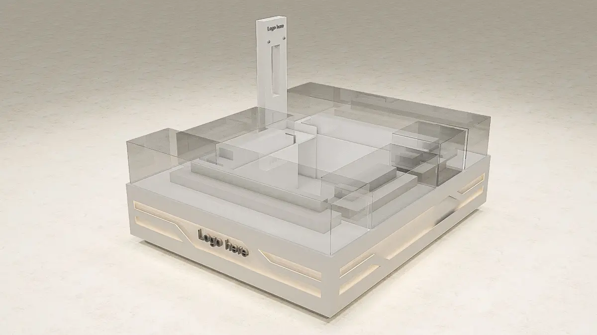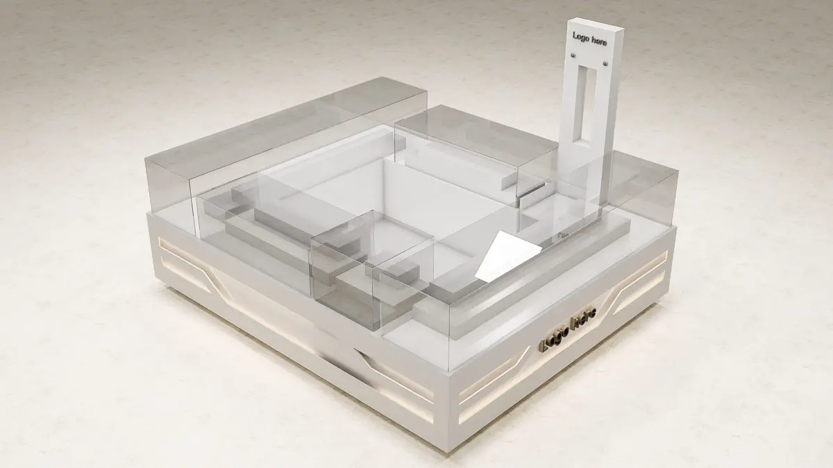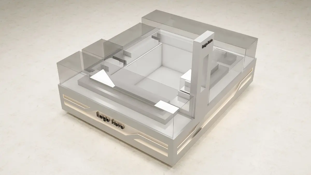 Mobile shop kiosk 3d modelA selling mobiles and mobiles accessories kiosk , its dimensions 3X2 M, for markets, malls and commercial centers, placed in the halls or internal squares, with all materials and interior lighting.