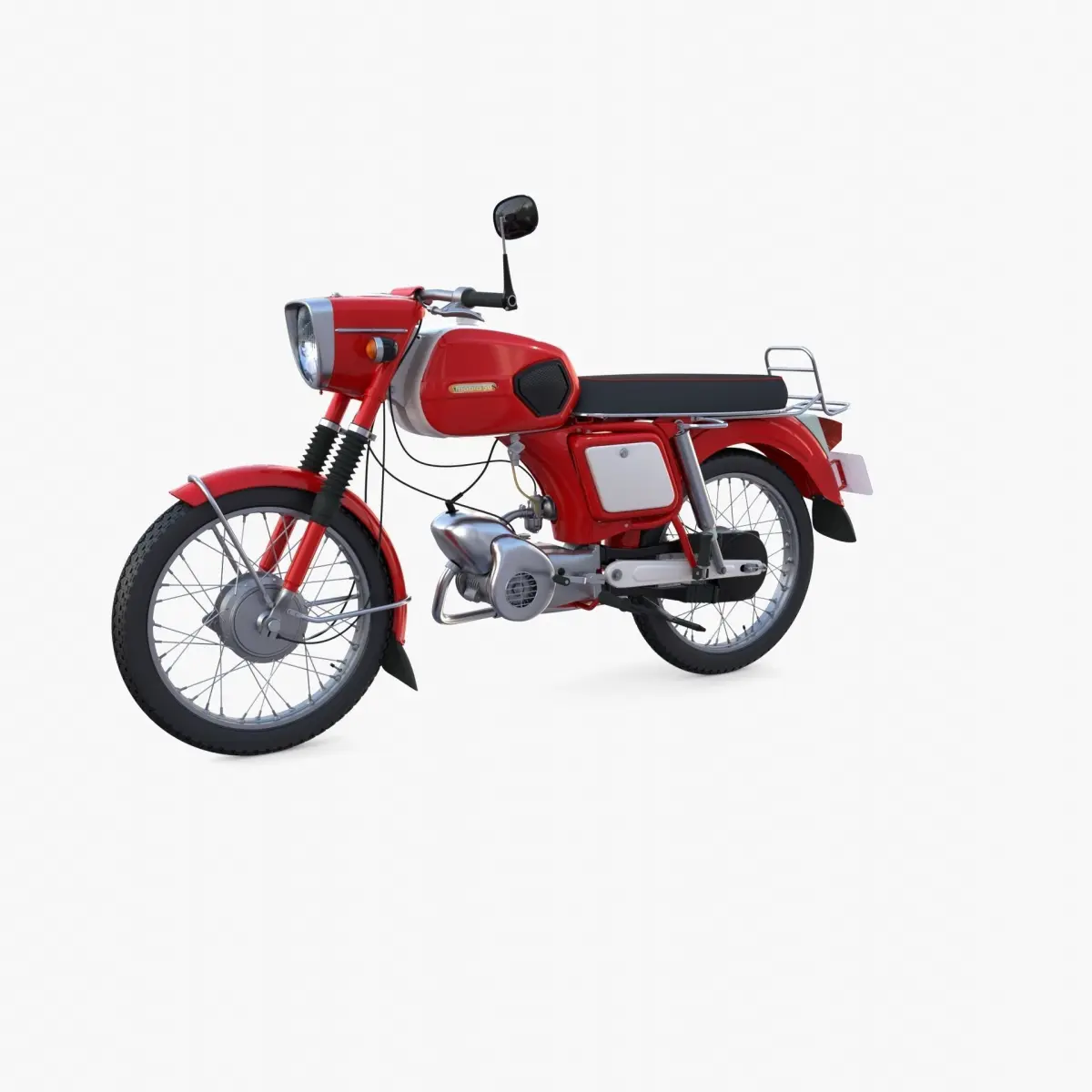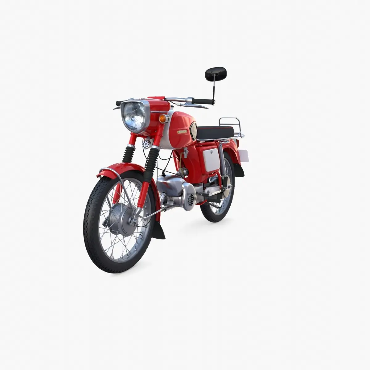 Highly detailed Moped 3d model rendered with Cycles in Blender, as per seen on attached images.The model is very intricately built, it has all cables, brakes, suspension elements modeled. The frame is also entirely modeled even though a part of it can be seen because the rest is covered by all other elements.It comes with 2 versions per format, one with solid modeled tires and the other one lower poly with tire details resulted from a bump map. The original poly count is for the lower poly version.The 3d model is scaled to original size in Blender.