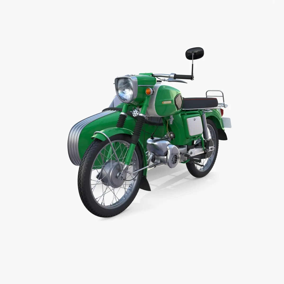 Highly detailed Moped with a detailed sidecar 3d model rendered with Cycles in Blender, as per seen on attached images. The model is very intricately built, it has all cables, brakes, suspension elements modeled. The frame is also entirely modeled even though a part of it can be seen because the rest is covered by all other elements.It comes with 2 versions per format, one with solid modeled tires and the other one lower poly with tire details resulted from a bump map. The original poly count is for the lower poly version.The 3d model is scaled to original size in Blender.