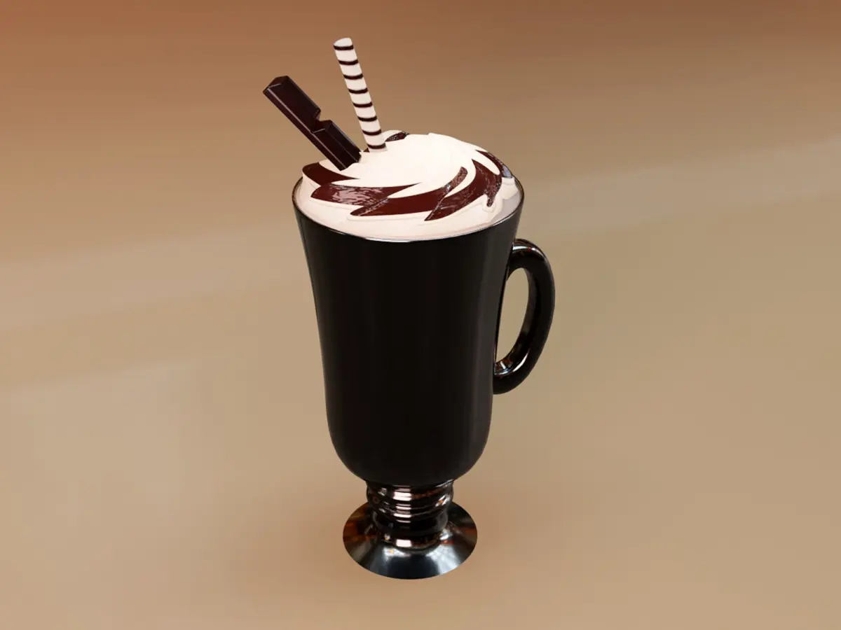 THIS MODEL CONTAINS:1 Tall glass1 Moca model with chocolate syrup1 Chantilly model for decoration1 Mini chocolate bar for decoration1 Chocolate cookie tube for decoration1 Optional black plastic glass
