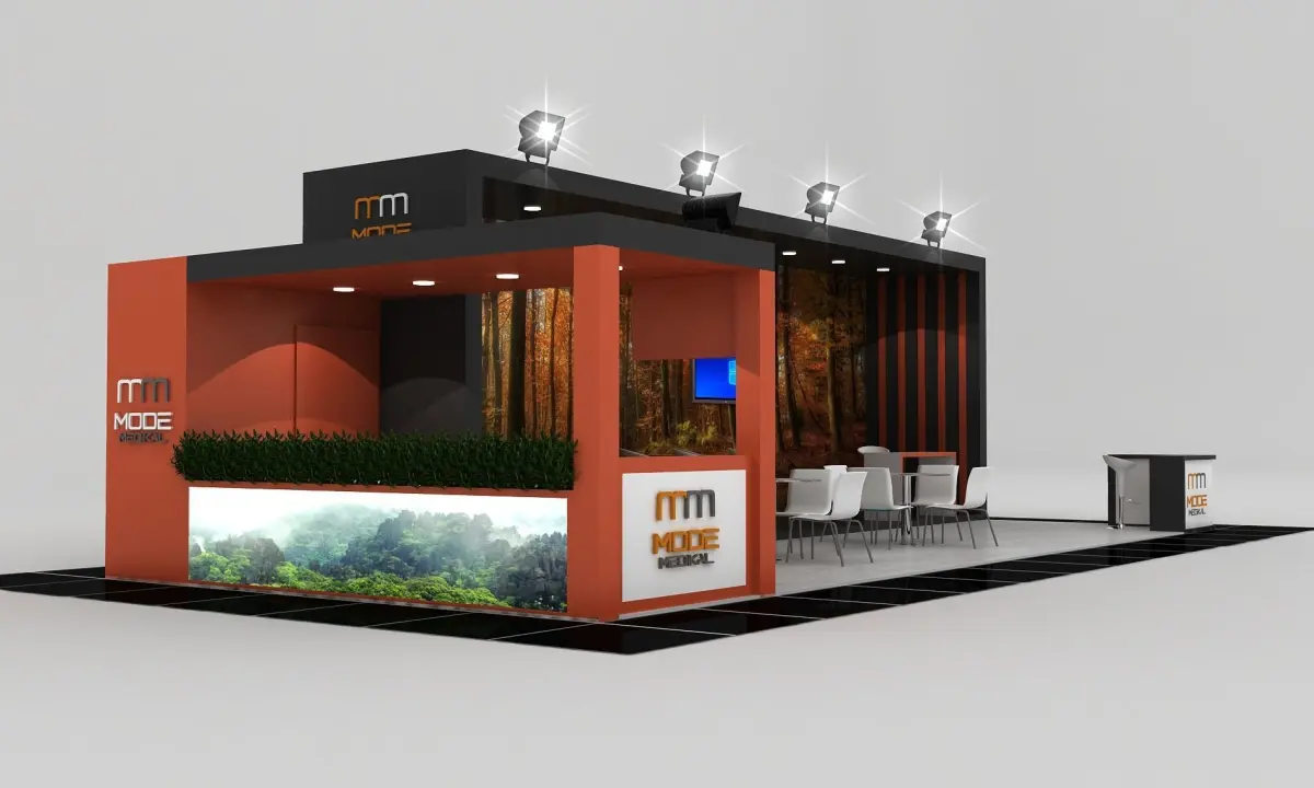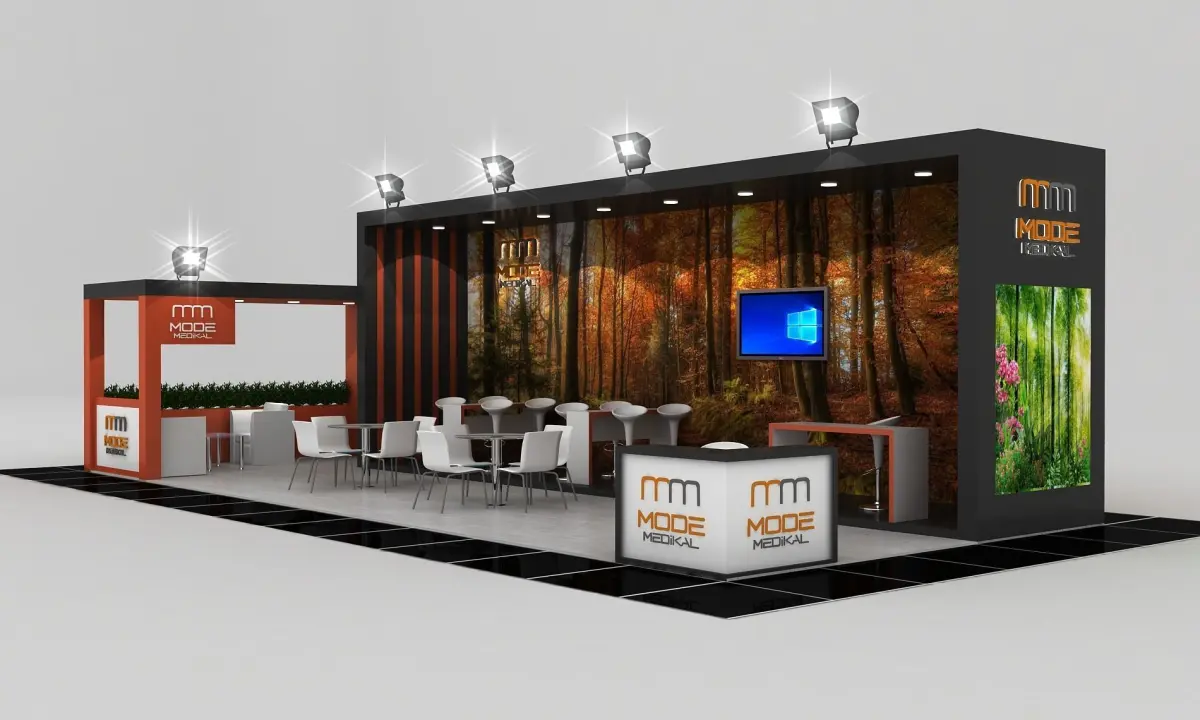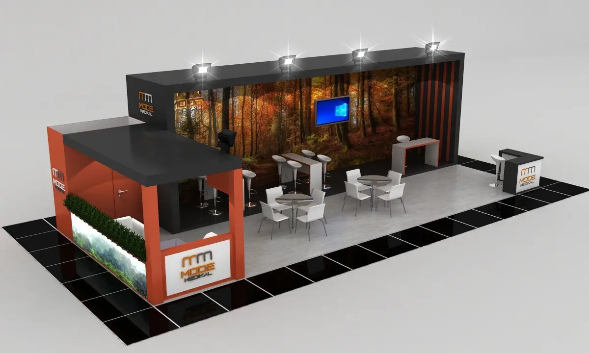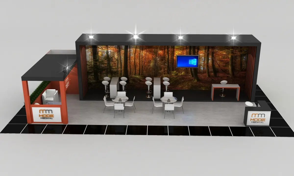 Stall Size 5m x 12 m Height 350 cm - 3 Side open- Store- Reception table- TV