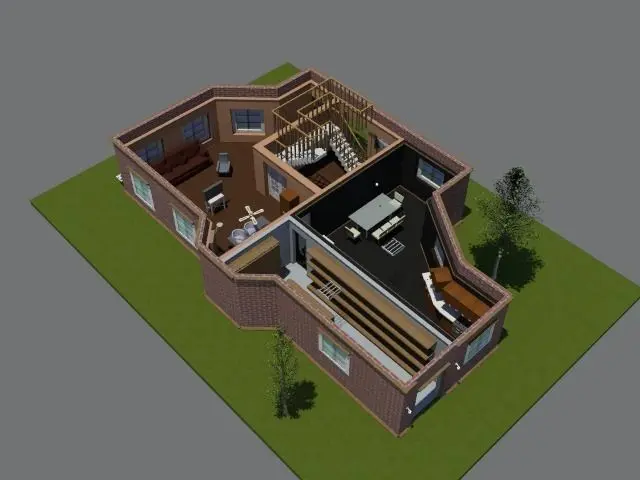 AIKINOS Housebuilder procedurally generated. Two stories detached house with interiors. AIKINOS adapts the room graphs to the defined layout of the house.AIKINOS :