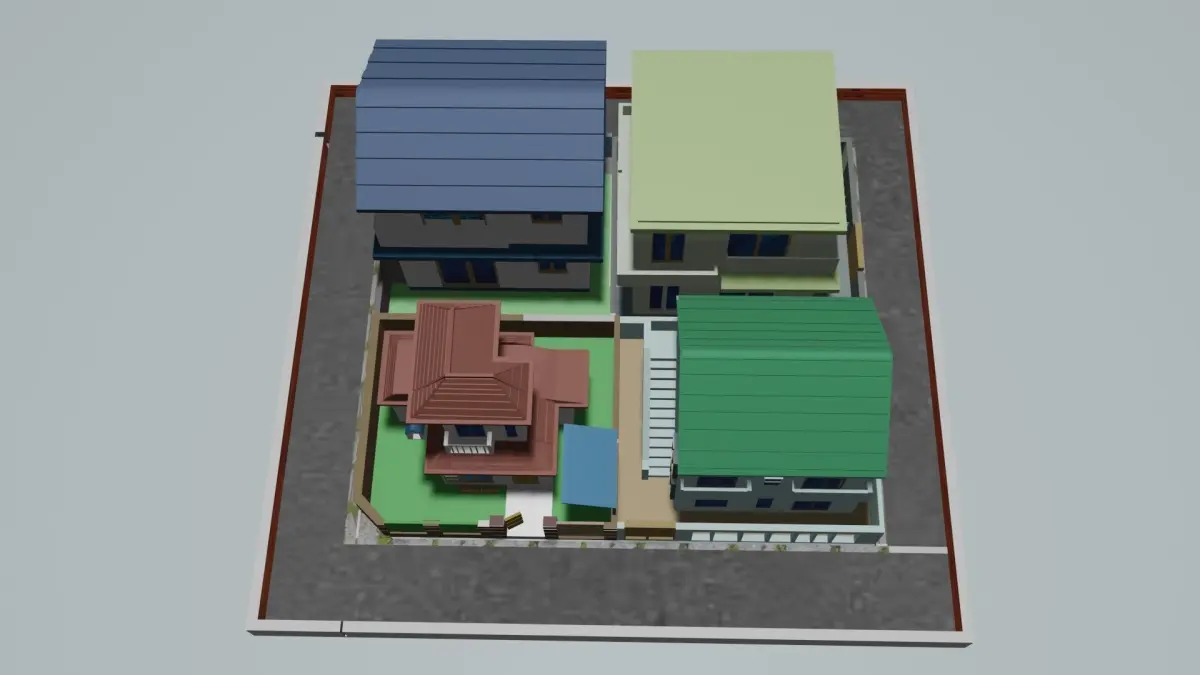 BACK OF FOUR HOUSE WITH ITERIORS.IT'S USEFUL FOR YOUR PROJECTS.
